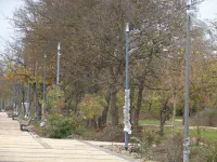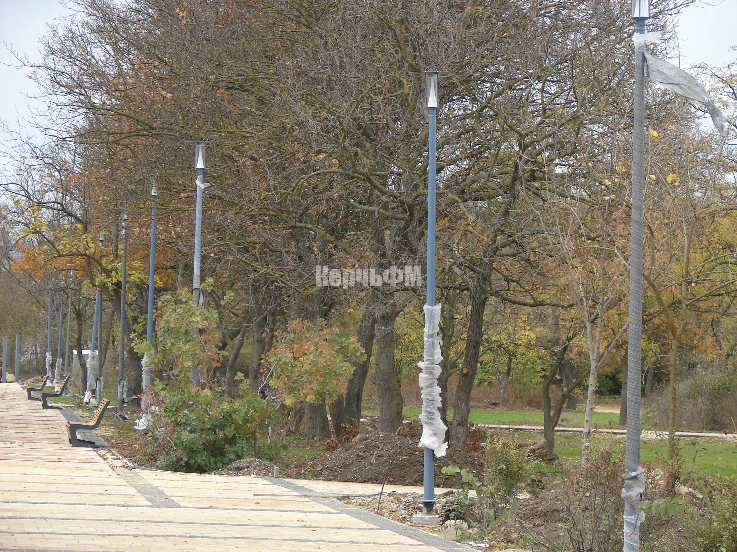 Вдоль главной аллеи установили новые фонари уличного освещения. Лавочки появились и на боковых дорожках, их количество растет с каждым днем.