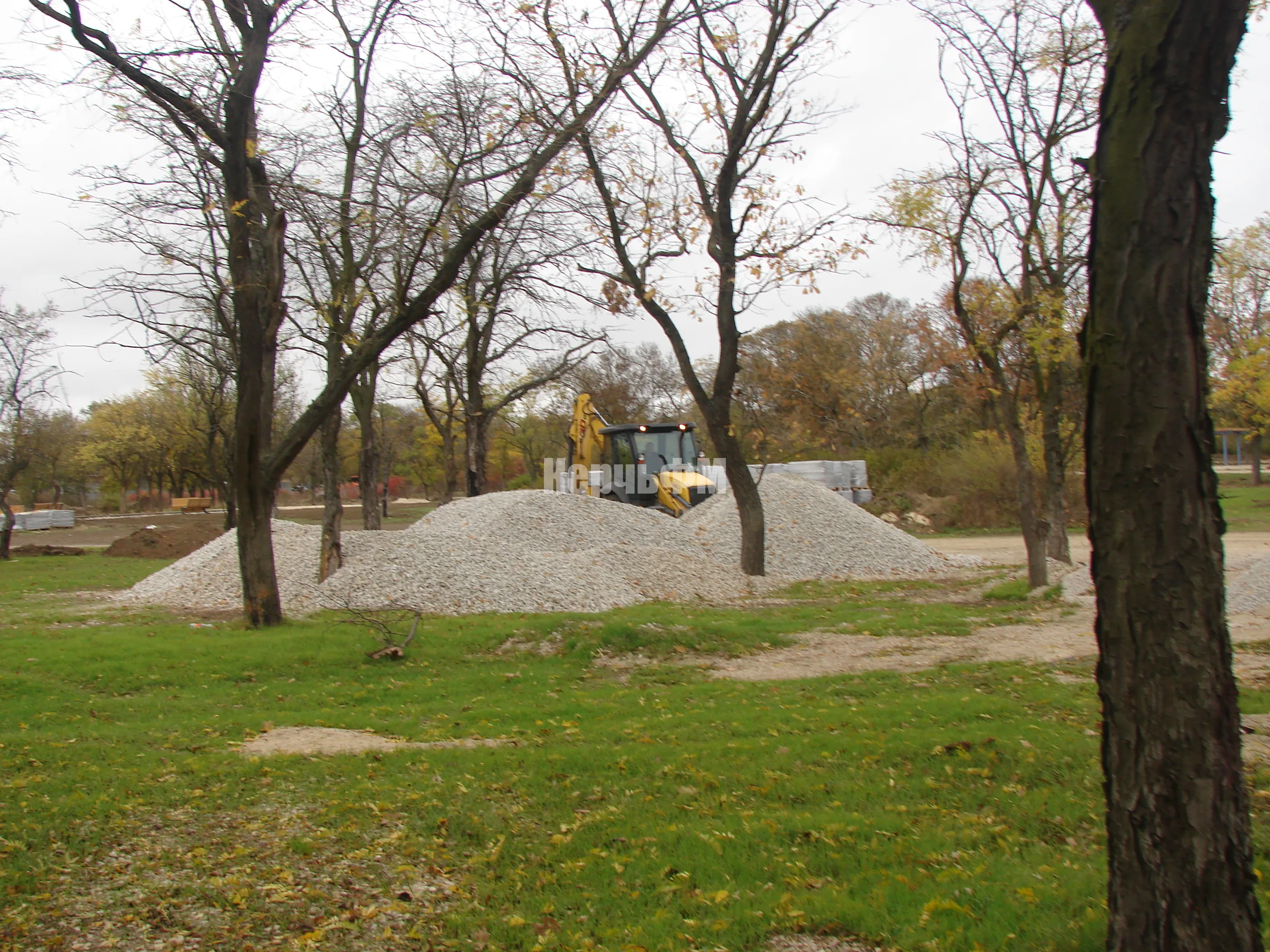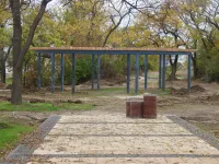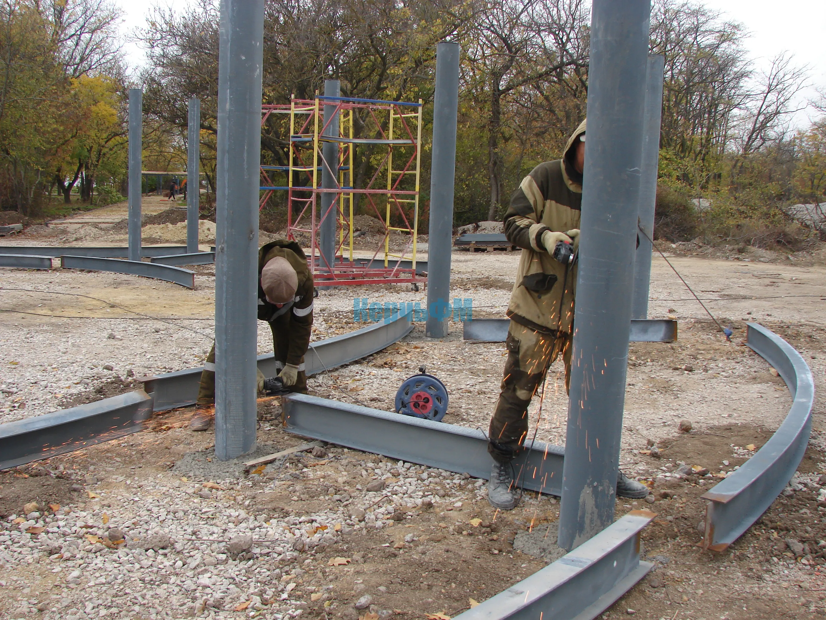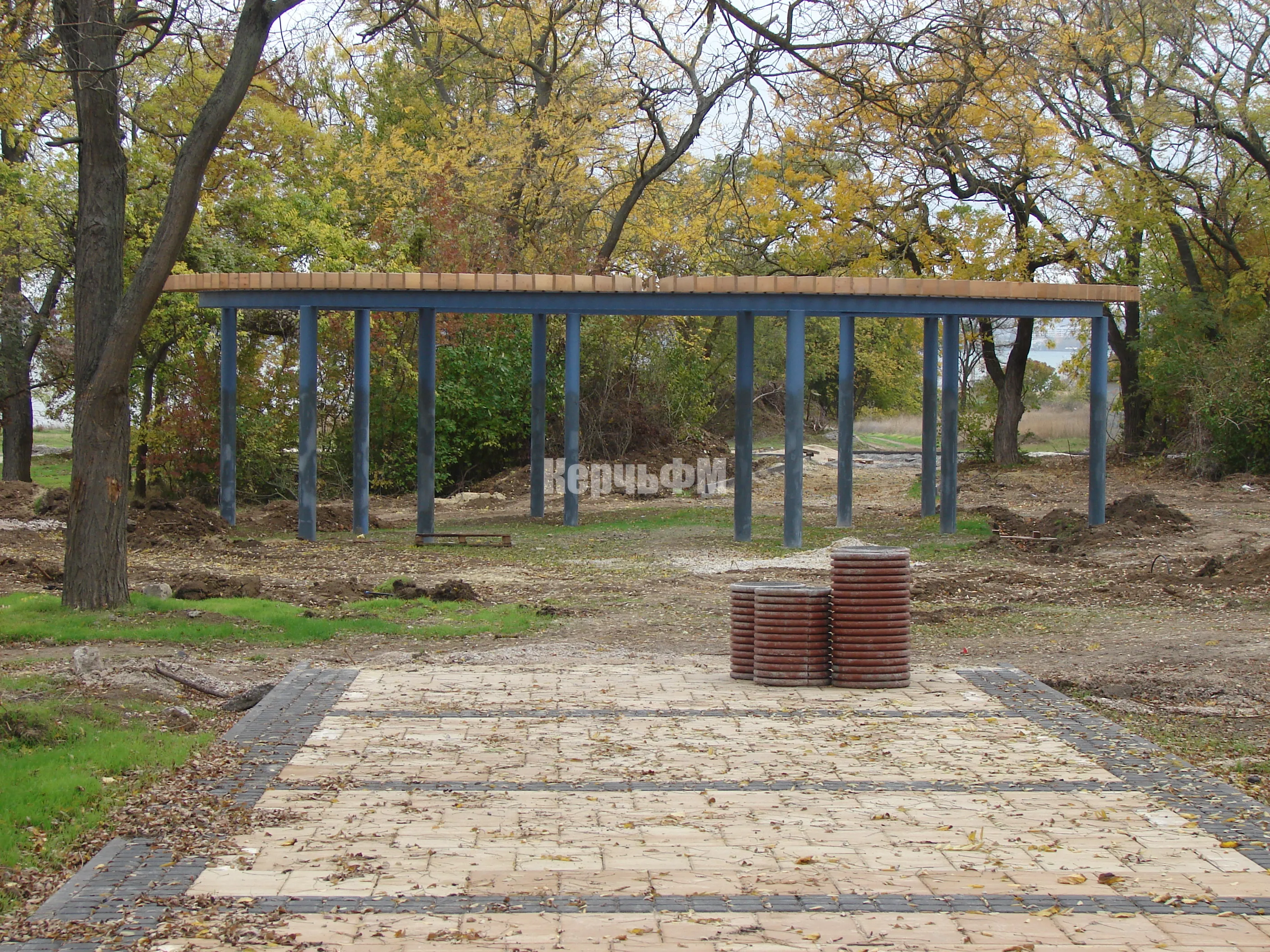 Теперь строители устанавливают основания для третьей перголы в самом конце центральной аллеи, за которой планируют установить  игровой комплекс "Троянский конь".