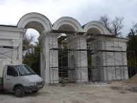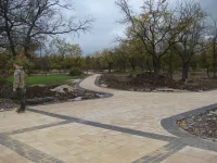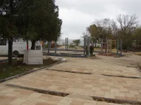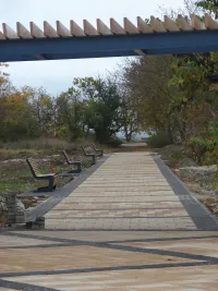 Продолжается обустройство пергол. Две из них уже готовы. Одна расположена посередине центральной аллеи, другая - на боковой аллее, ведущей к морю.