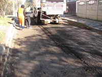 Тротуар по правой стороне дороги к асфальтировке был подготовлен заранее, а также подрядчиком были уложены новые бордюры с обеих сторон проезжей части.