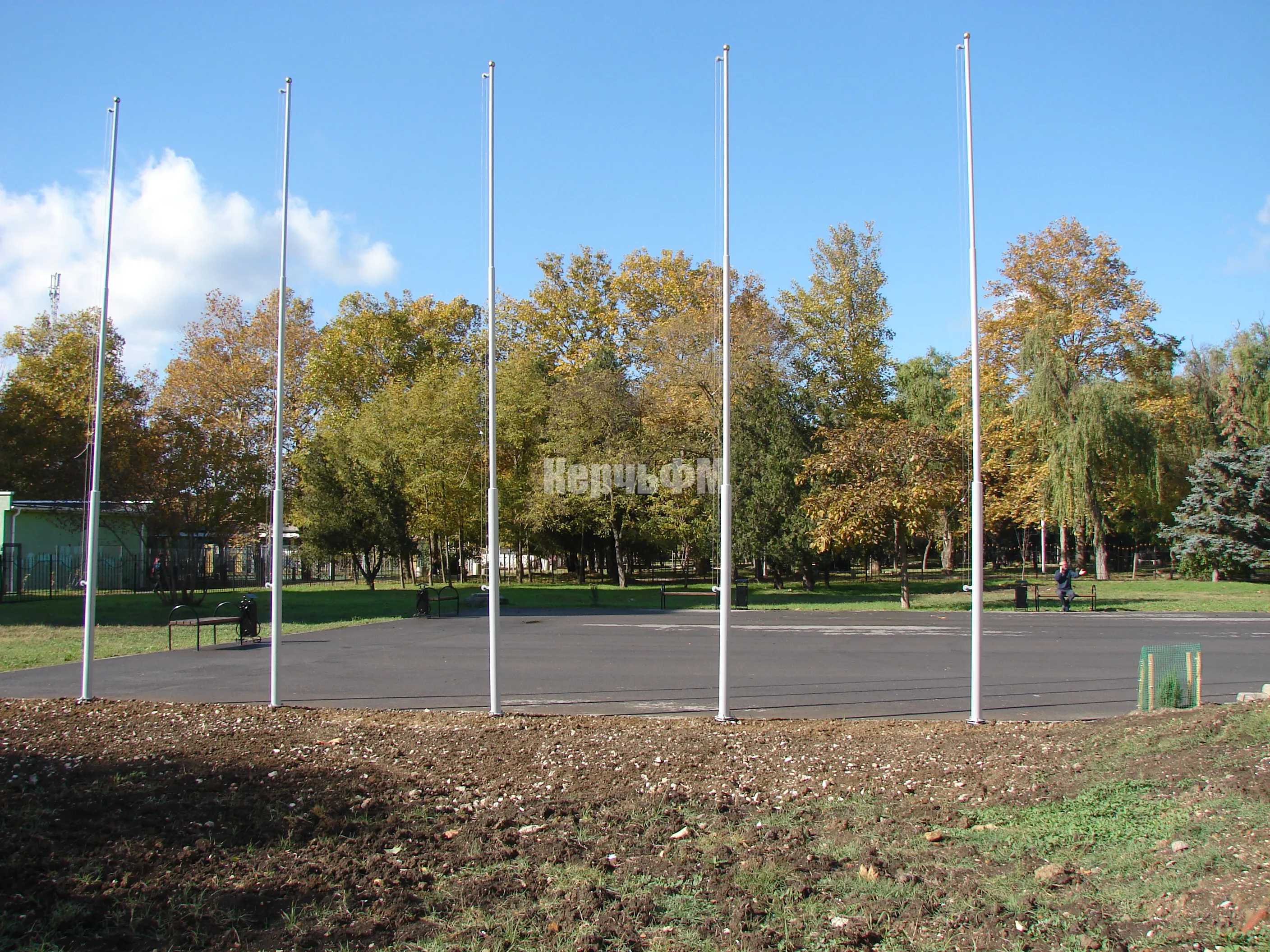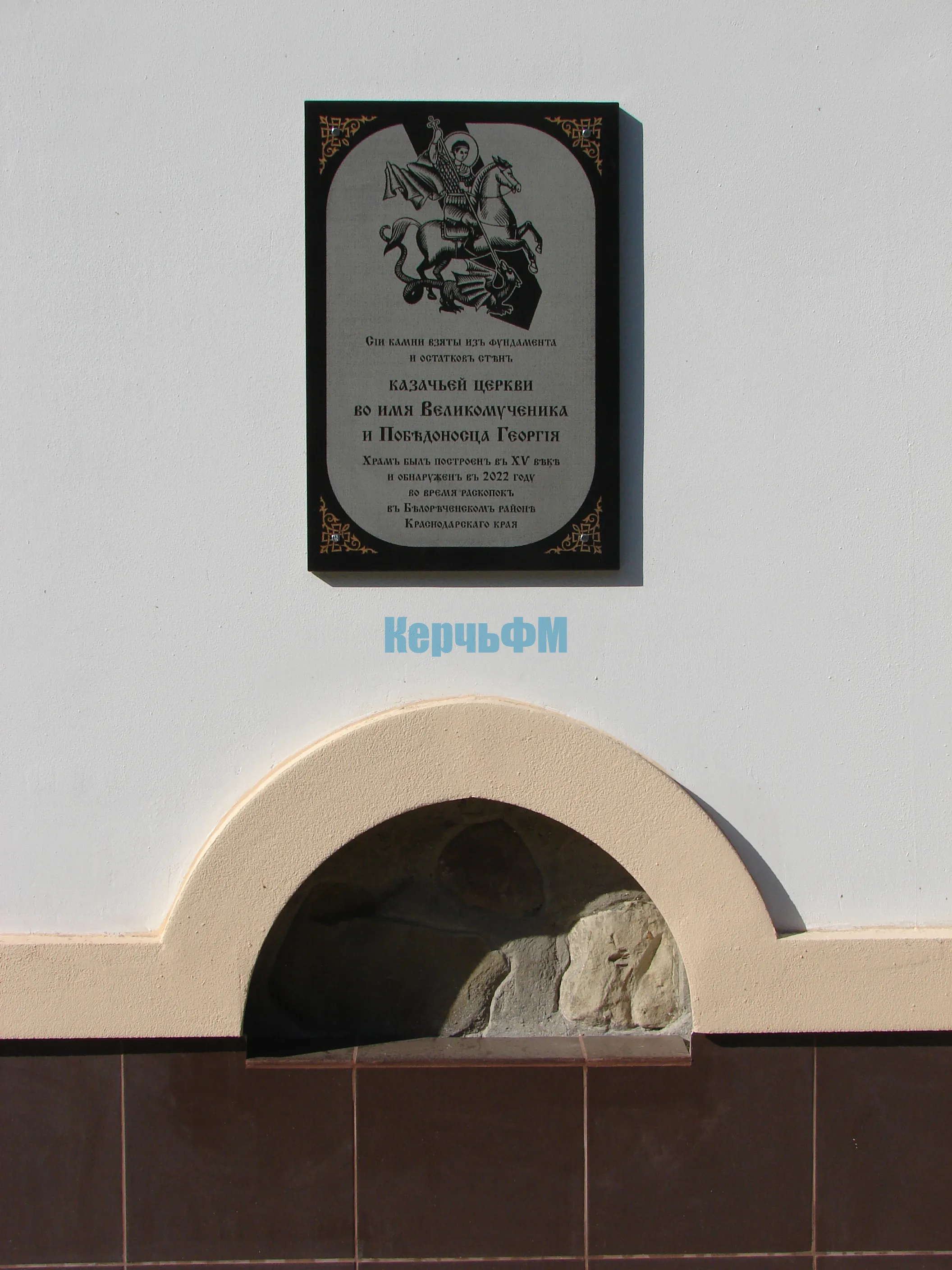 У часовни установлены флагштоки, а на одной из стен появилась табличка, под которой вмурованы камни.