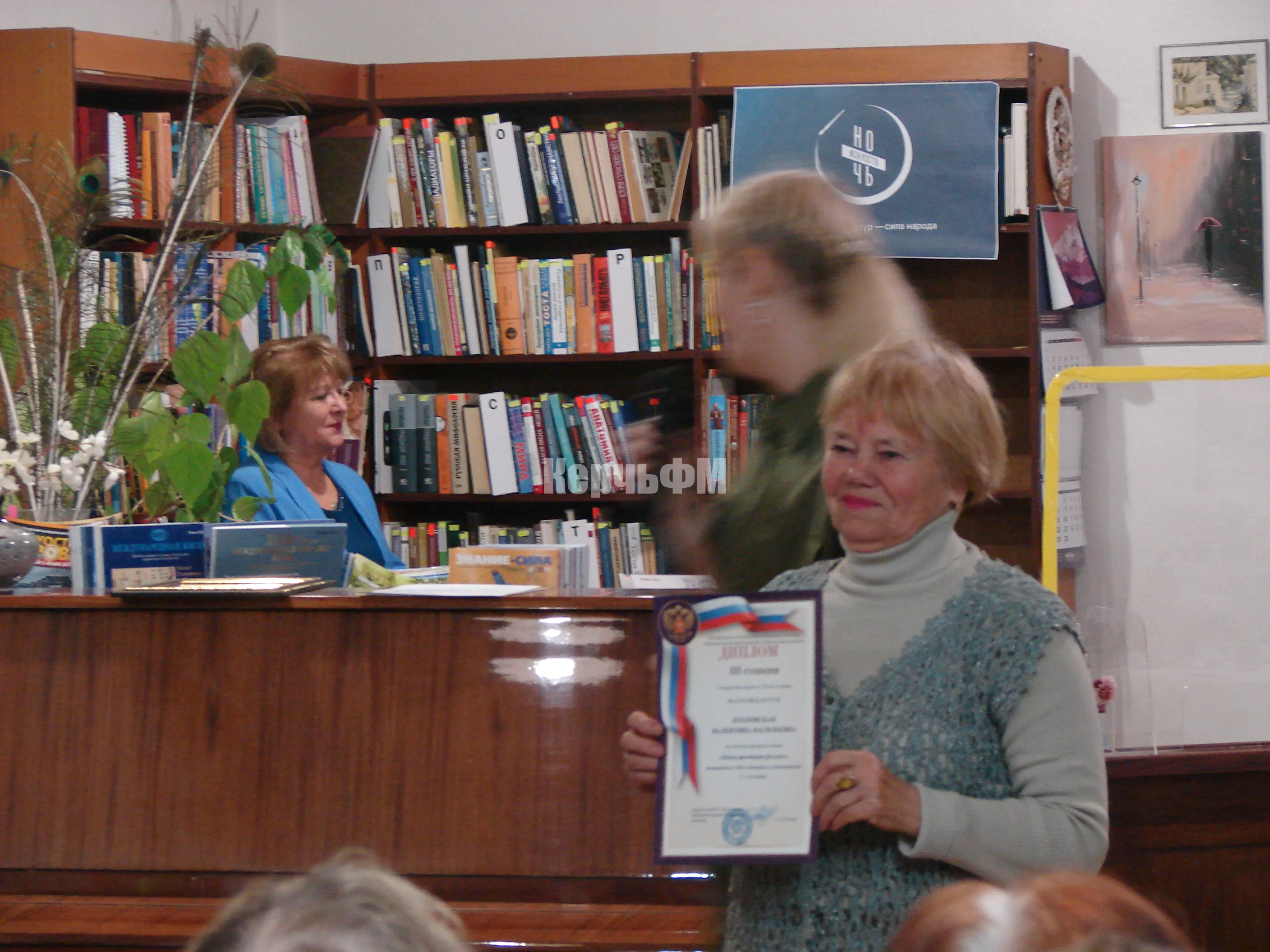 Библиотека в этот вечер вручила награды победителям литературного диктанта, который прошел в сентябре, и победителям конкурса чтецов, посвященного 130-летию со дня рождения Сергея Есенина, состоявшегося в октябре.