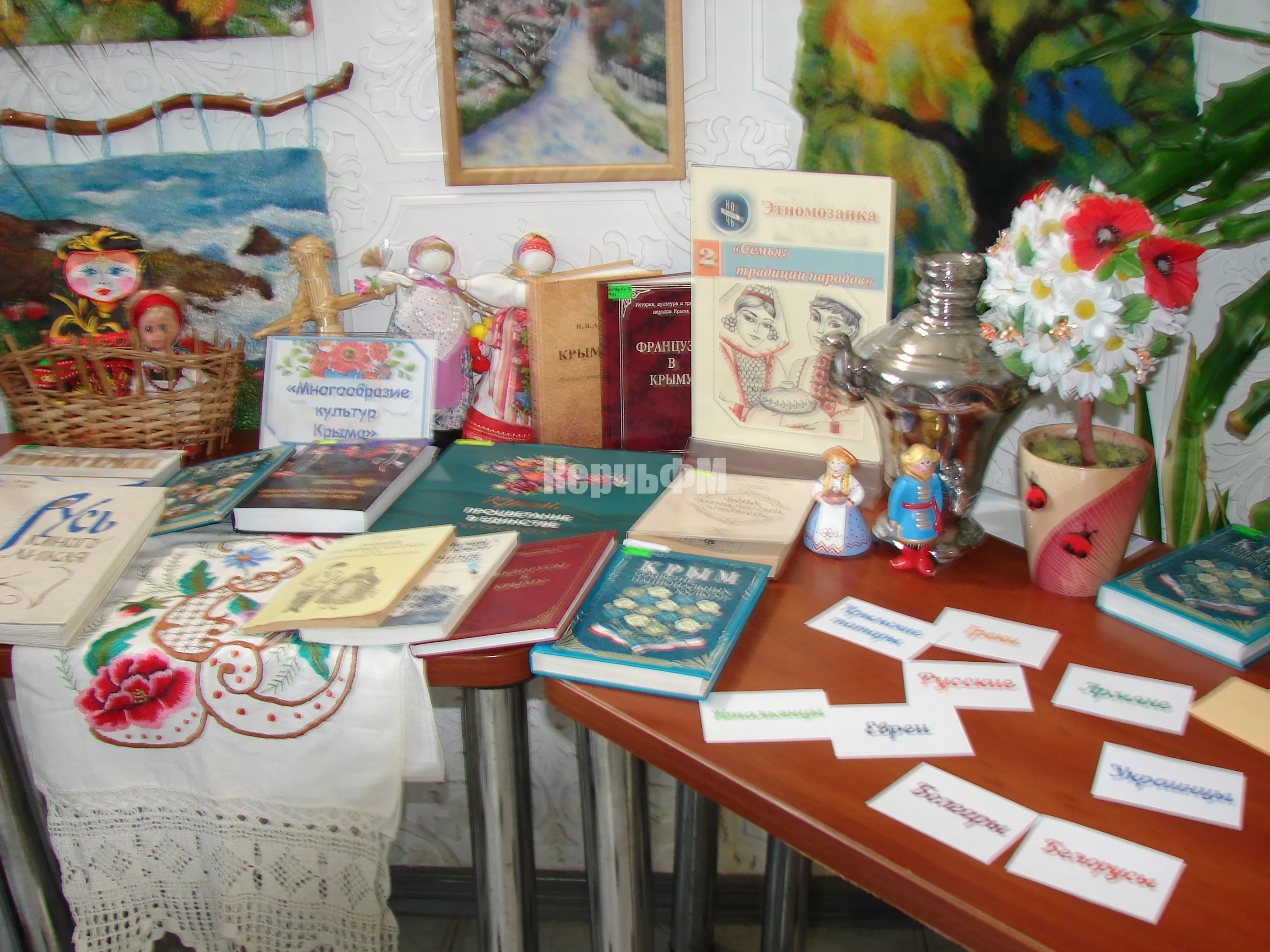 Весь вечер в библиотеке работали несколько площадок. Ведущие рассказывали посетителям о народах, населяющих Крым, их традициях и языках. Одновременно работали несколько выставок: "Рукотворные чудеса", "Многообразие культур Крыма".