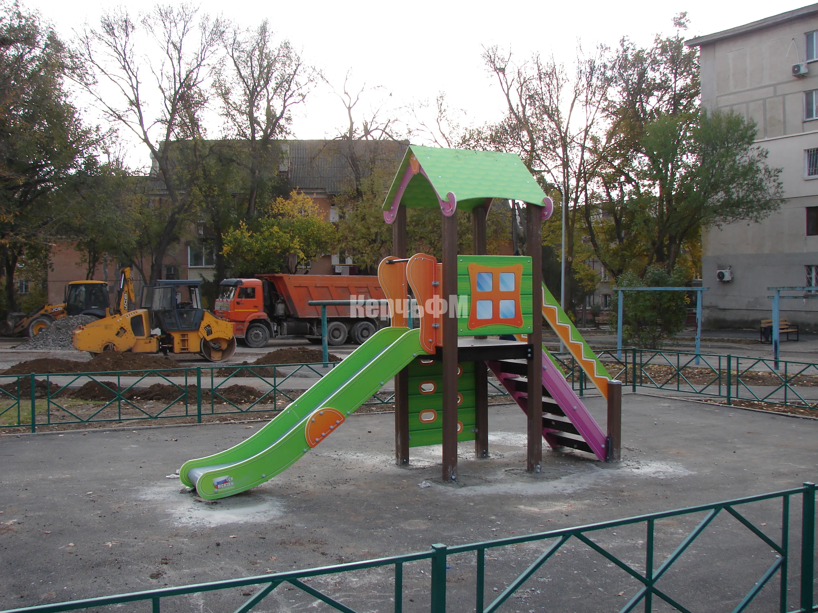 На придомовой территории района Всесоюзной, 10 установили первые элементы детской и спортивной площадок