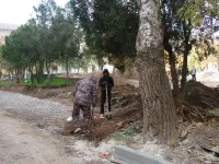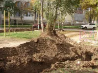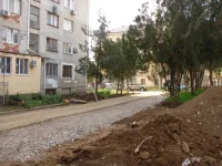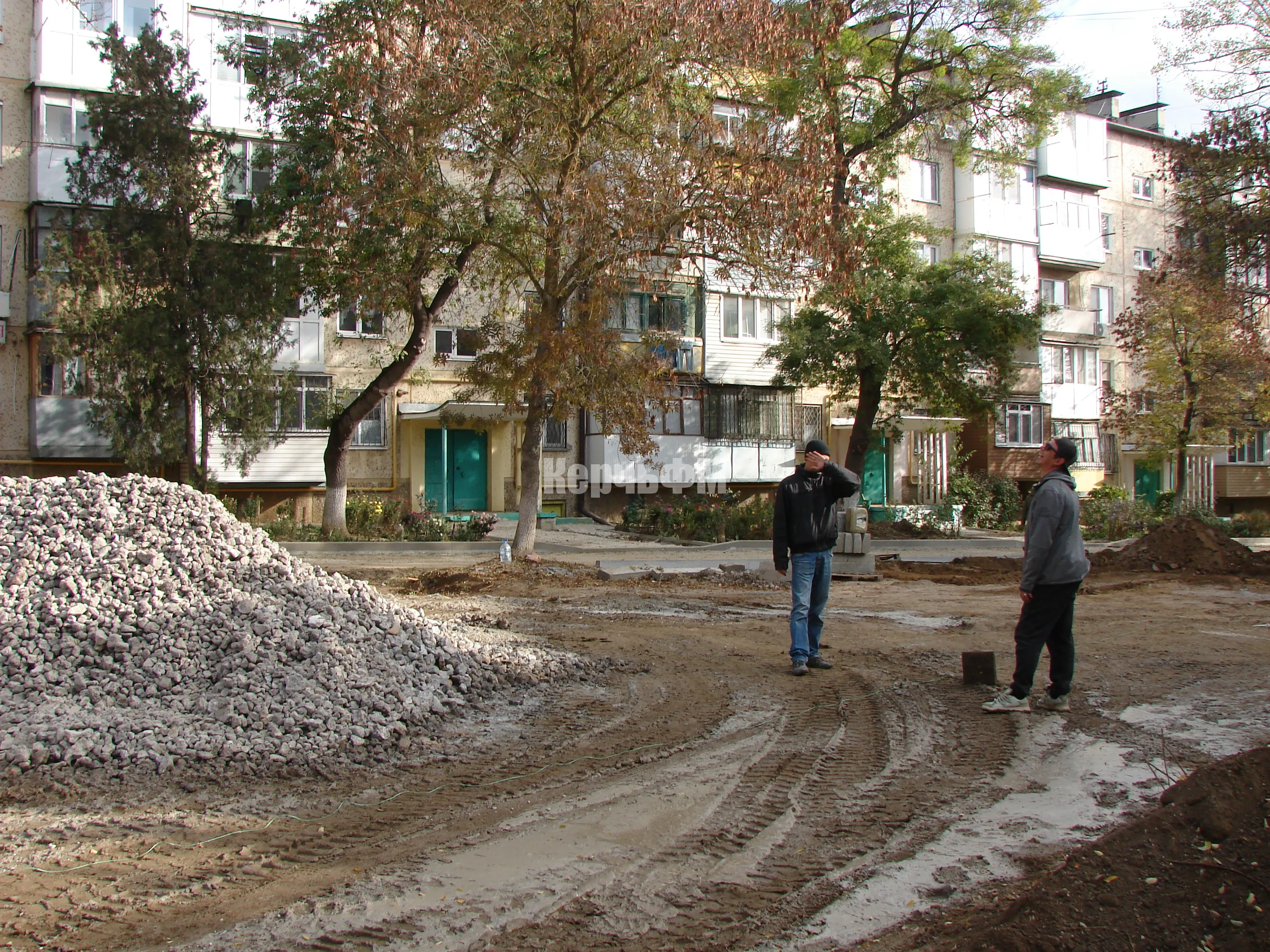 Ведется подготовка территории под площадки для сушки белья, а также спортивные и детские.