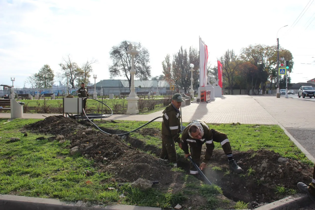 В керченском сквере "Монетка" завершают монтаж системы автоматического полива