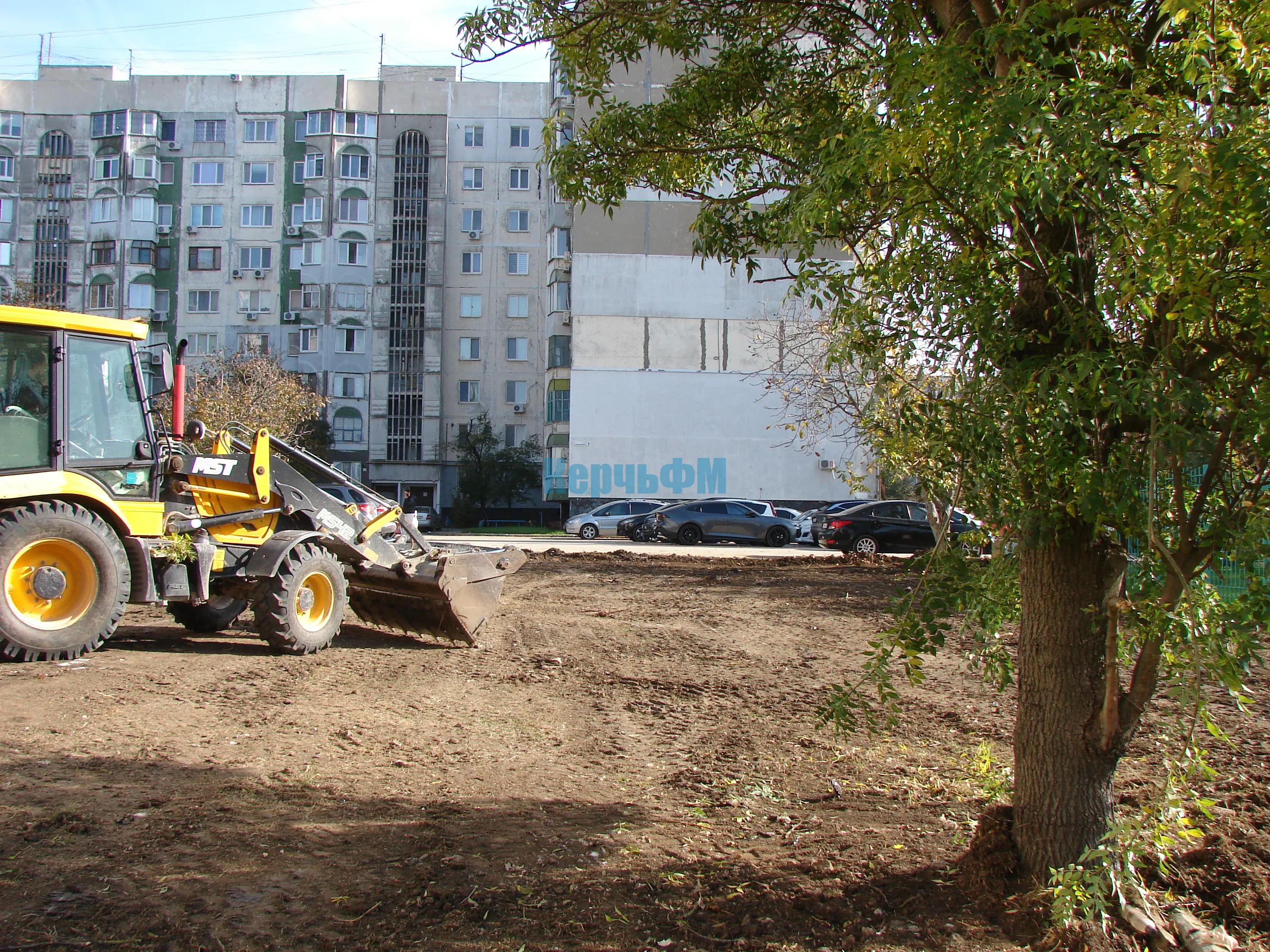 За домом №16 со стороны ограждения школы № 26 тяжелая техника расчищает заросший пустырь, передает КерчьФМ.