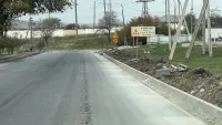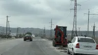 Специалисты на данный момент заняты установкой новых бордюров вдоль дороги.