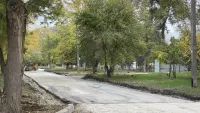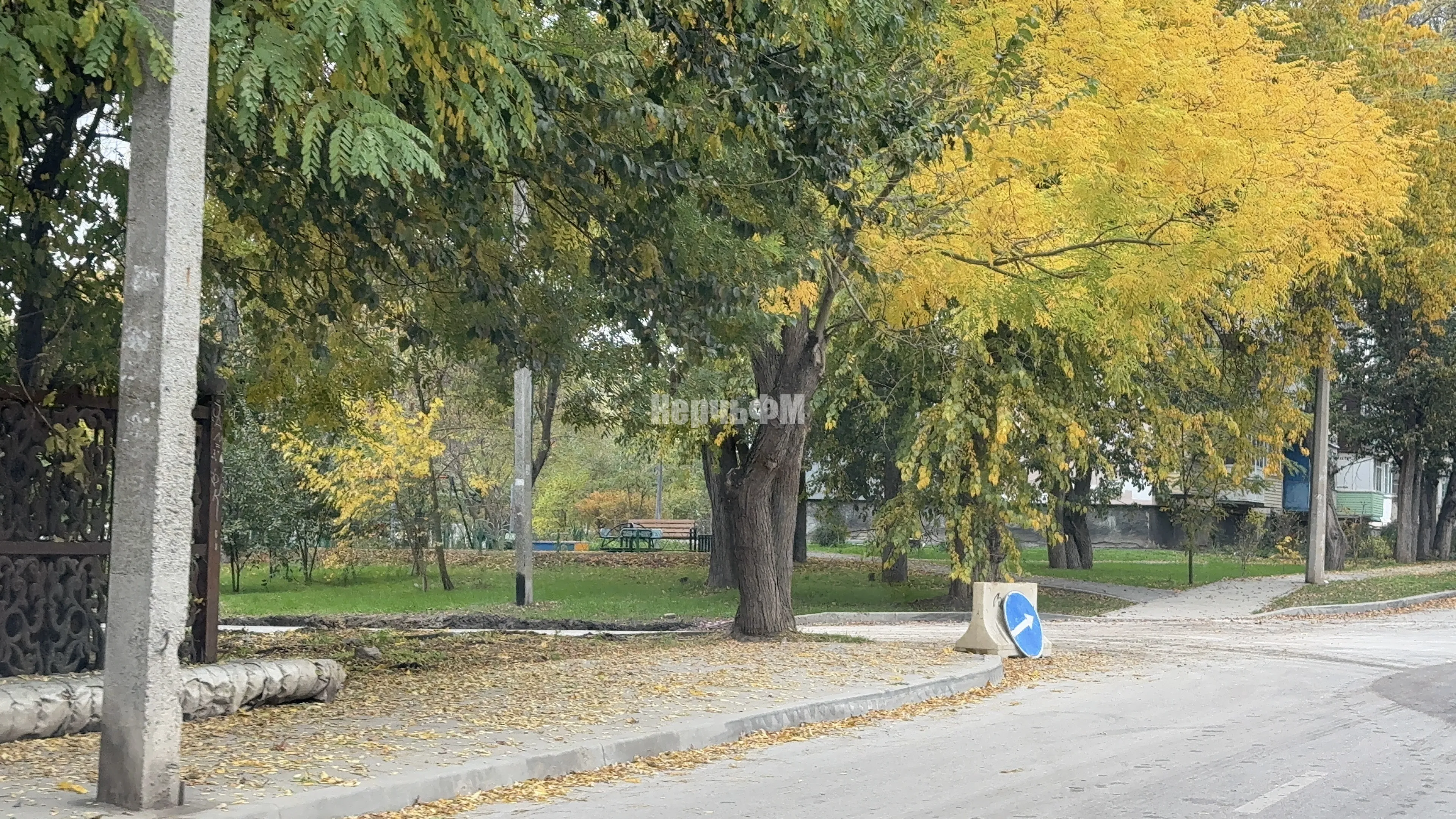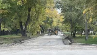 Движение транспорта около детского сада было перекрыто из-за дорожных работ.