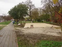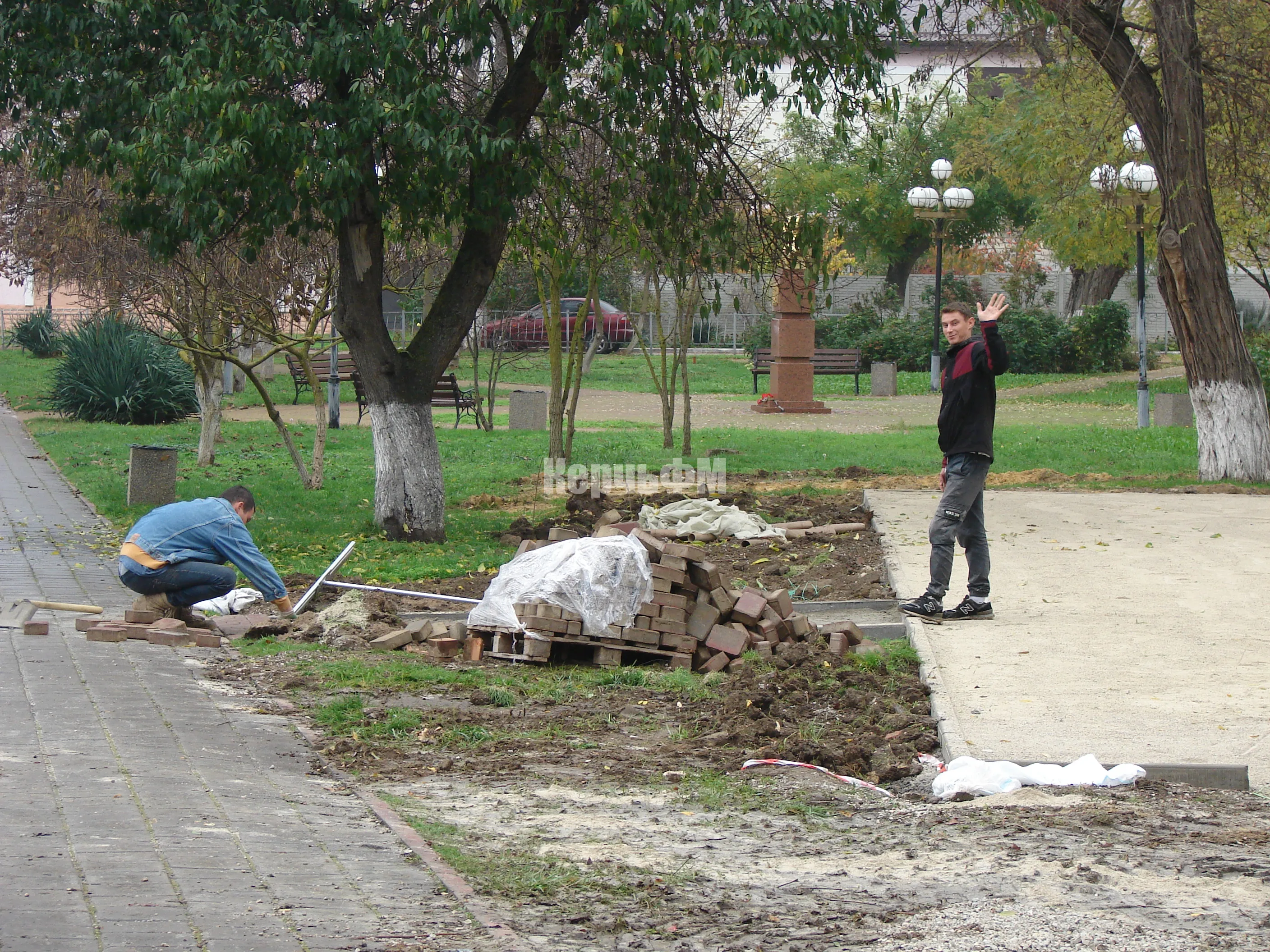 Основание под установку детской площадки строители обустраивают в сквере Н.И. Пирогова, недалеко от памятника выдающемуся врачу-хирургу.