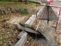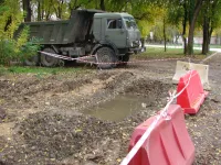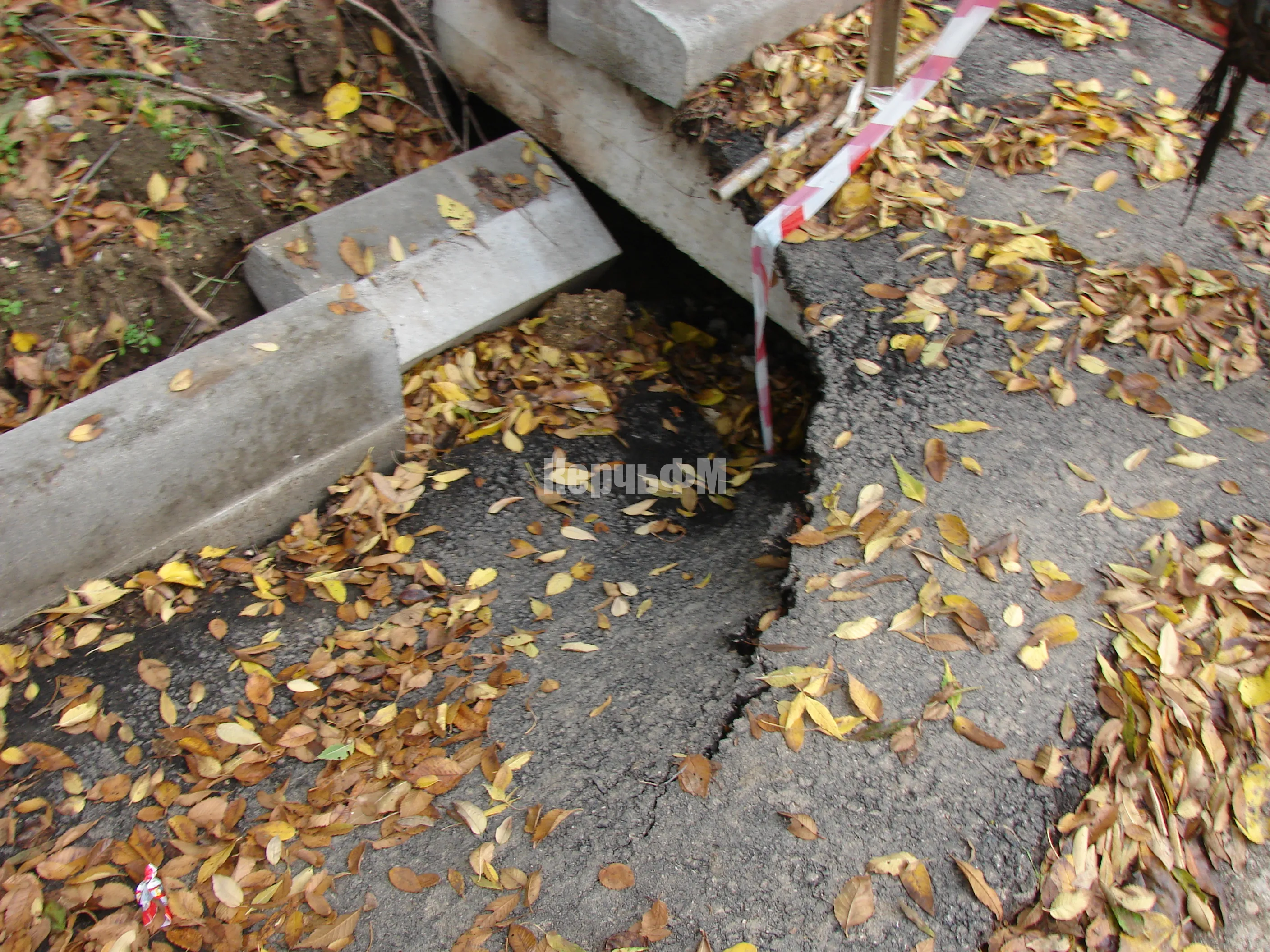 Дорожное покрытие по 12 Апреля рядом уже просело и обваливается.