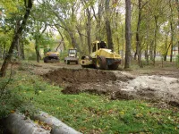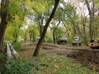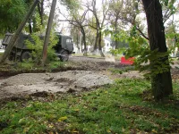 Далее дорога была выровнена и засыпана щебнем вплоть до самого проблемного ее участка, где фиксируются постоянные порывы водовода.