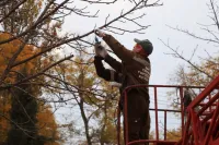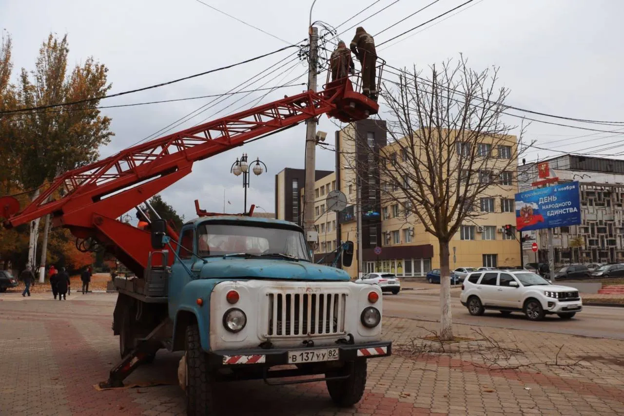 На улице Кирова, в районе гостиницы «Керчь», сотрудники Зеленхоза формируют кроны каштанов, придавая им аккуратную сферическую форму. Это необходимо для поддержания эстетики городских улиц и здоровья деревьев.