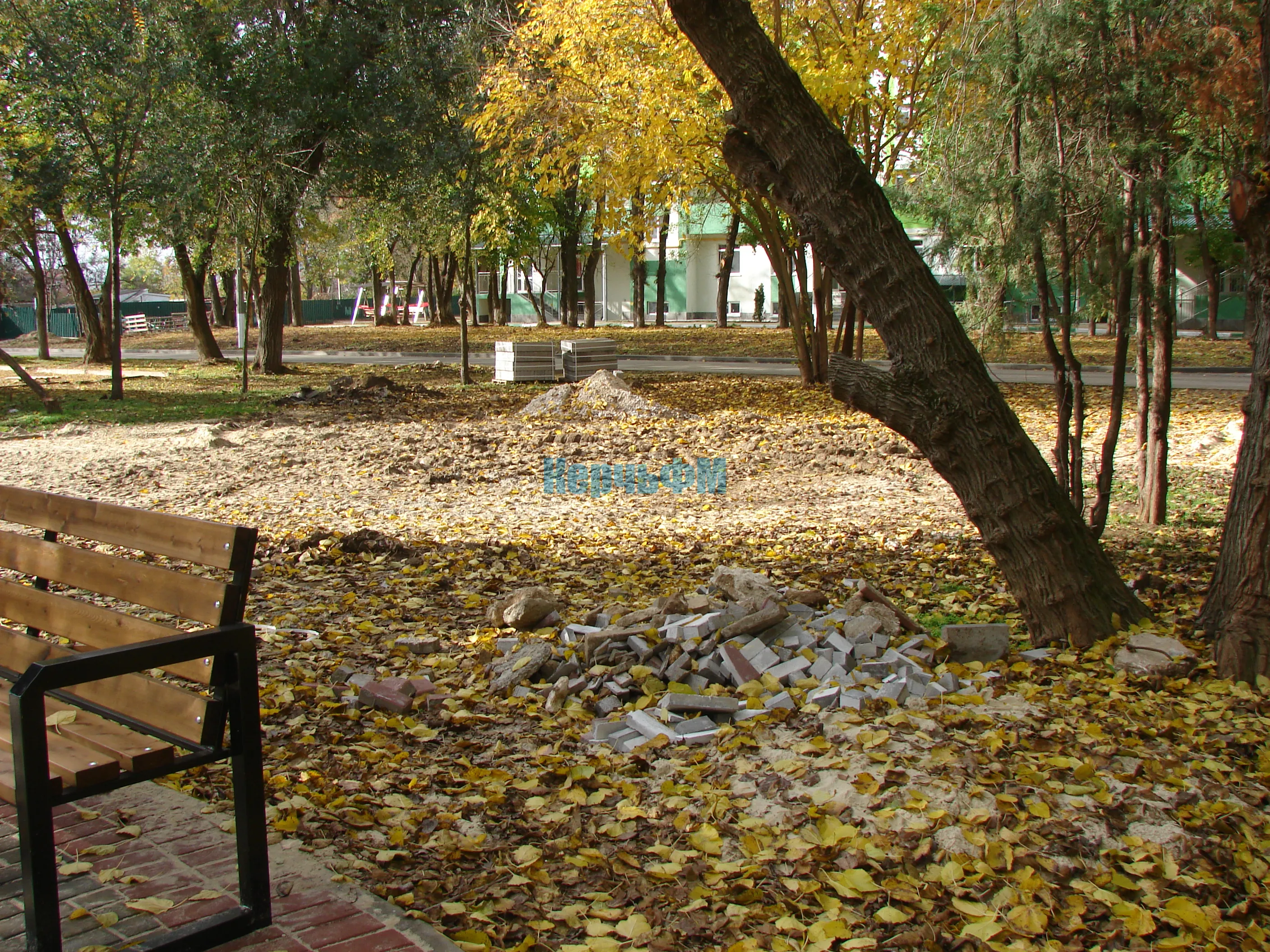 У сквера на сегодняшний день остаются без новой тротуарной плитки две пешеходные дорожки.