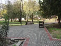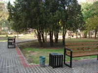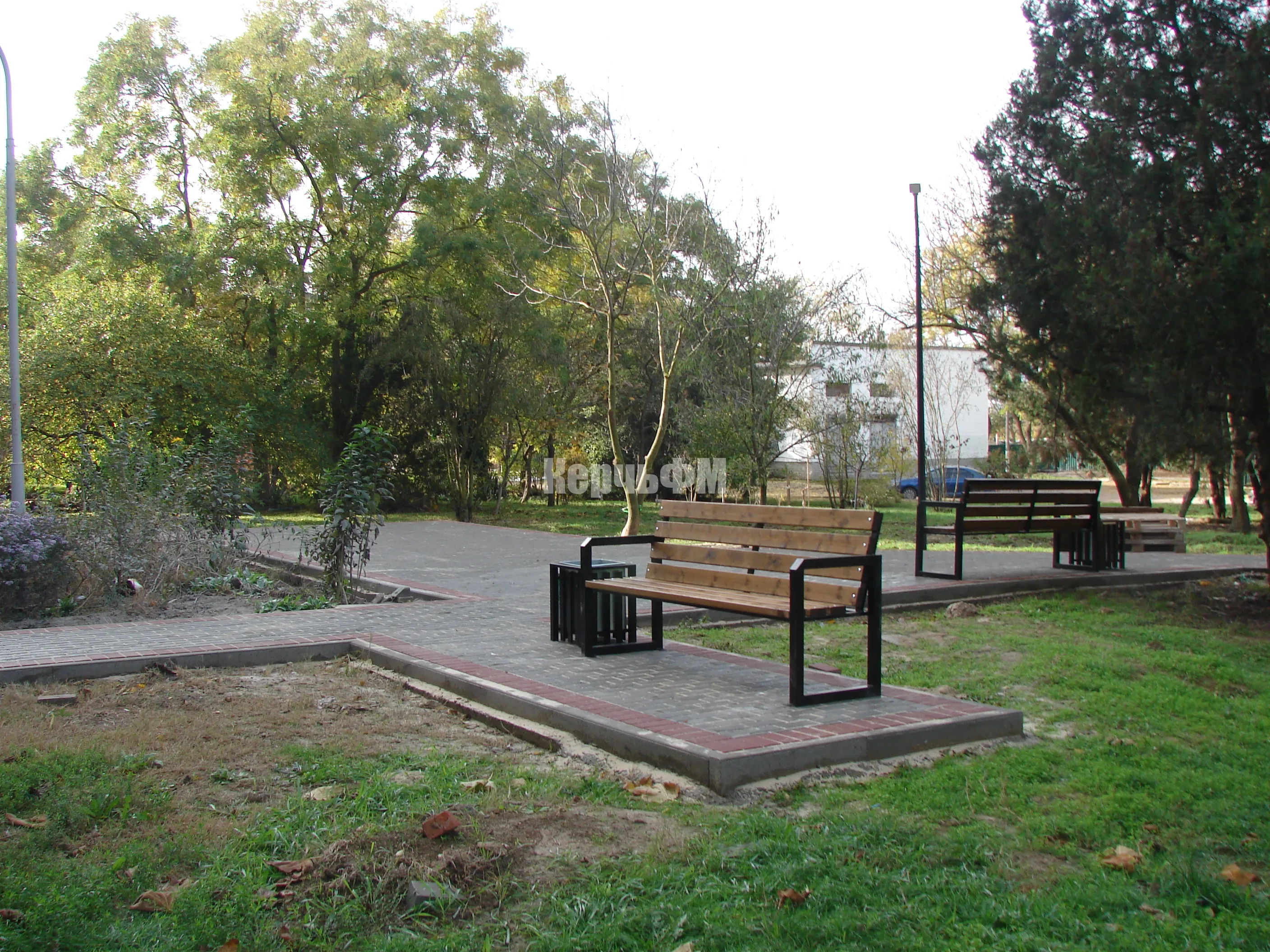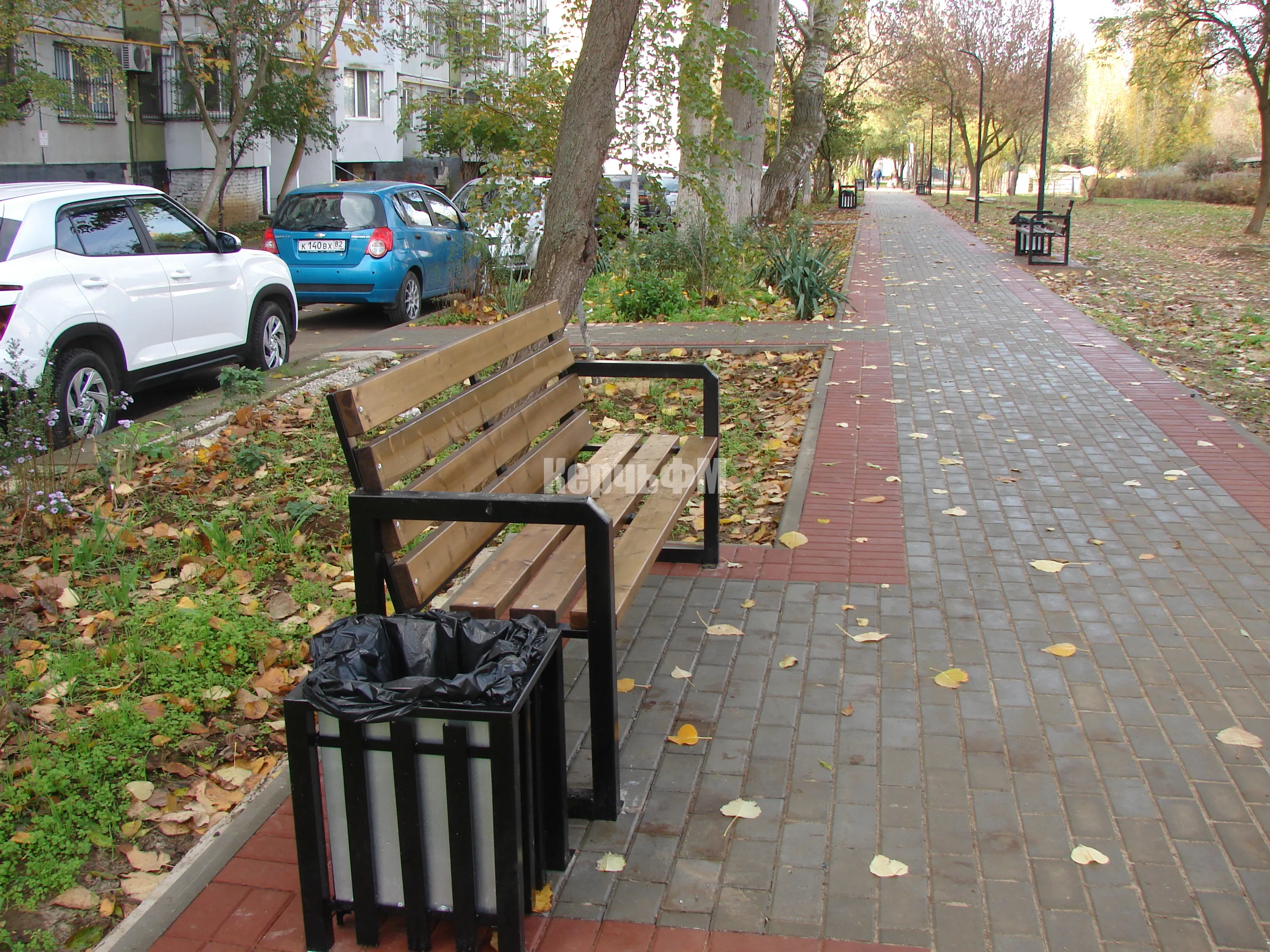 Здесь, а также вдоль центральной аллеи установлены лавочки и мусорные урны.