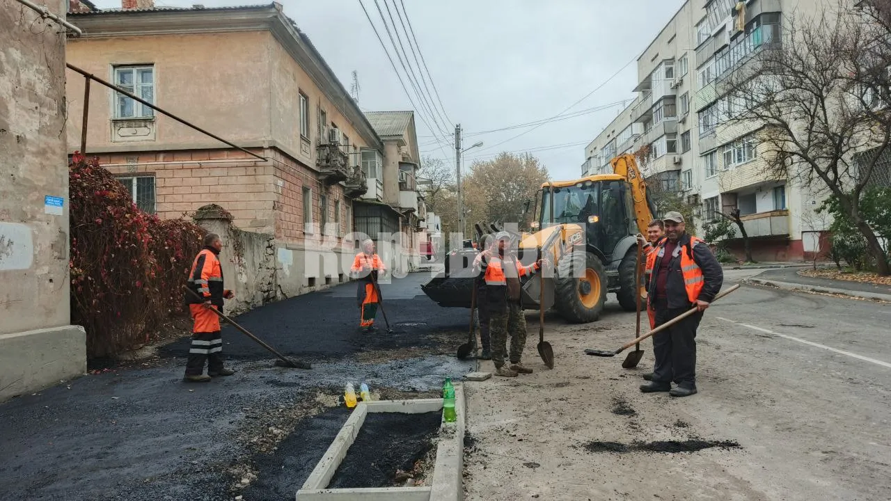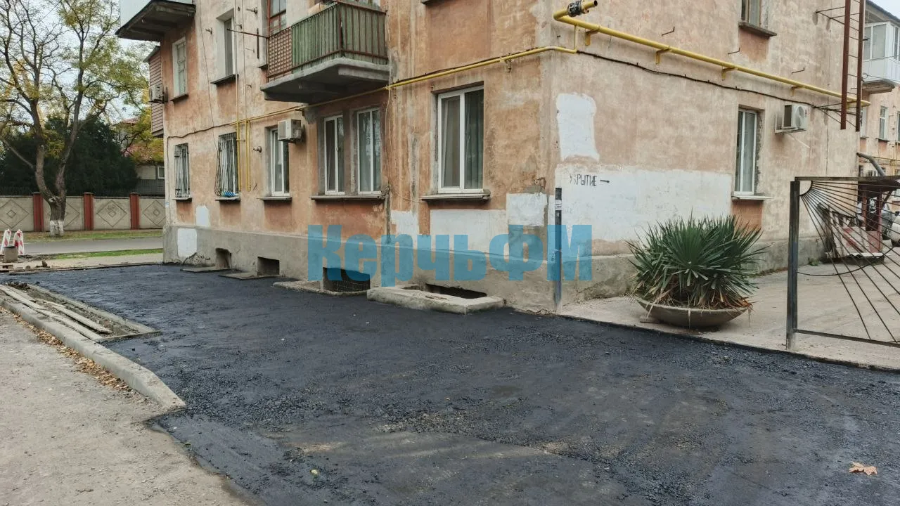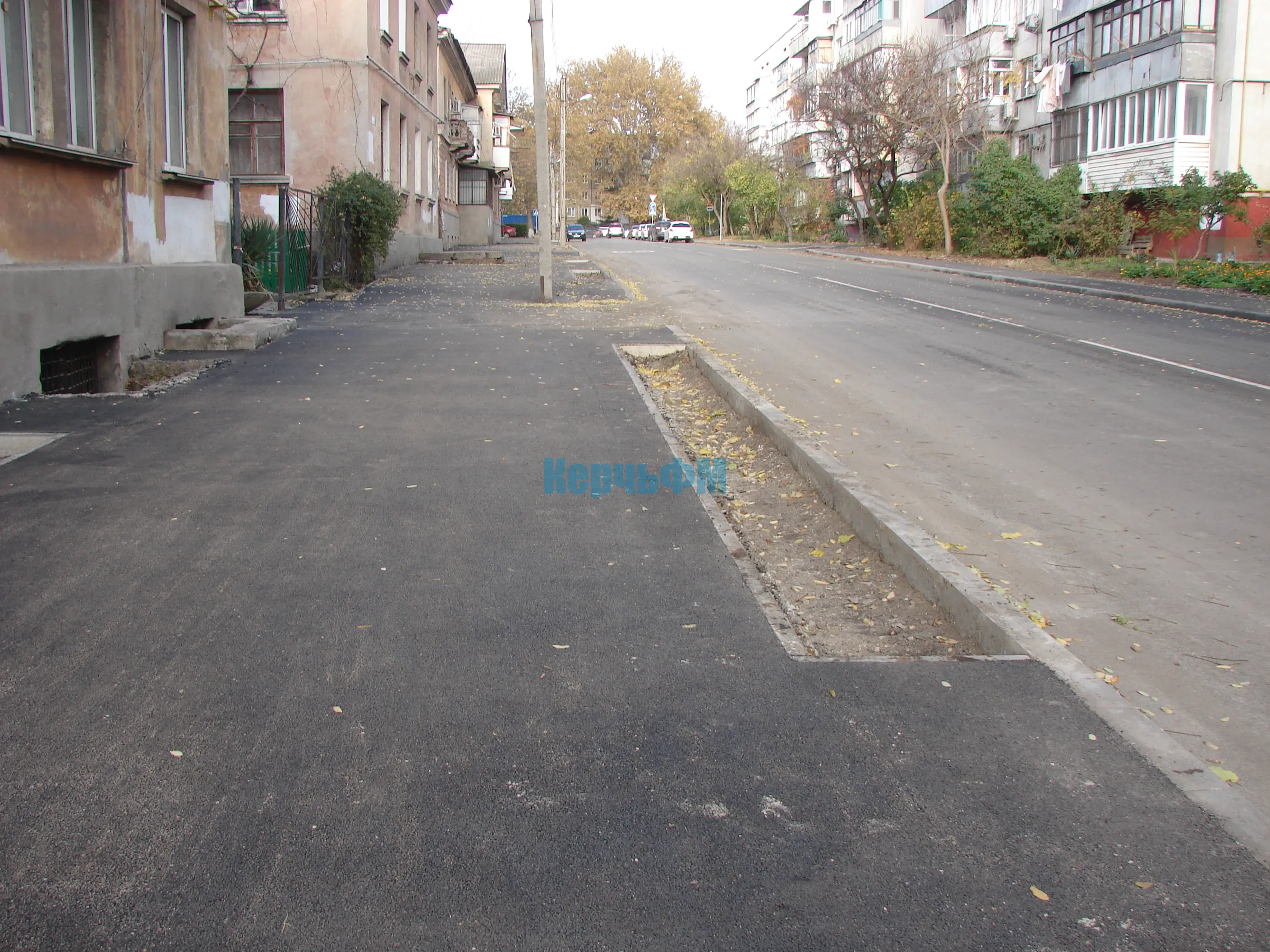 В выходные рабочие подрядчика завершили асфальтировку тротуара со стороны нечетной стороны домов.