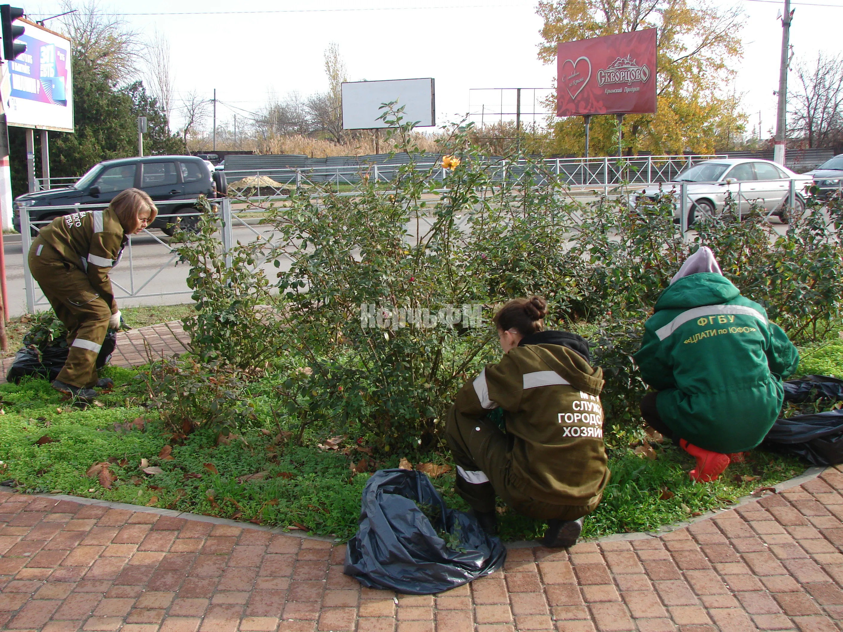 Специалисты керченской Службы городского хозяйства проводили сегодня обрезку роз в сквере Воссоединения, где их высажено достаточно много.