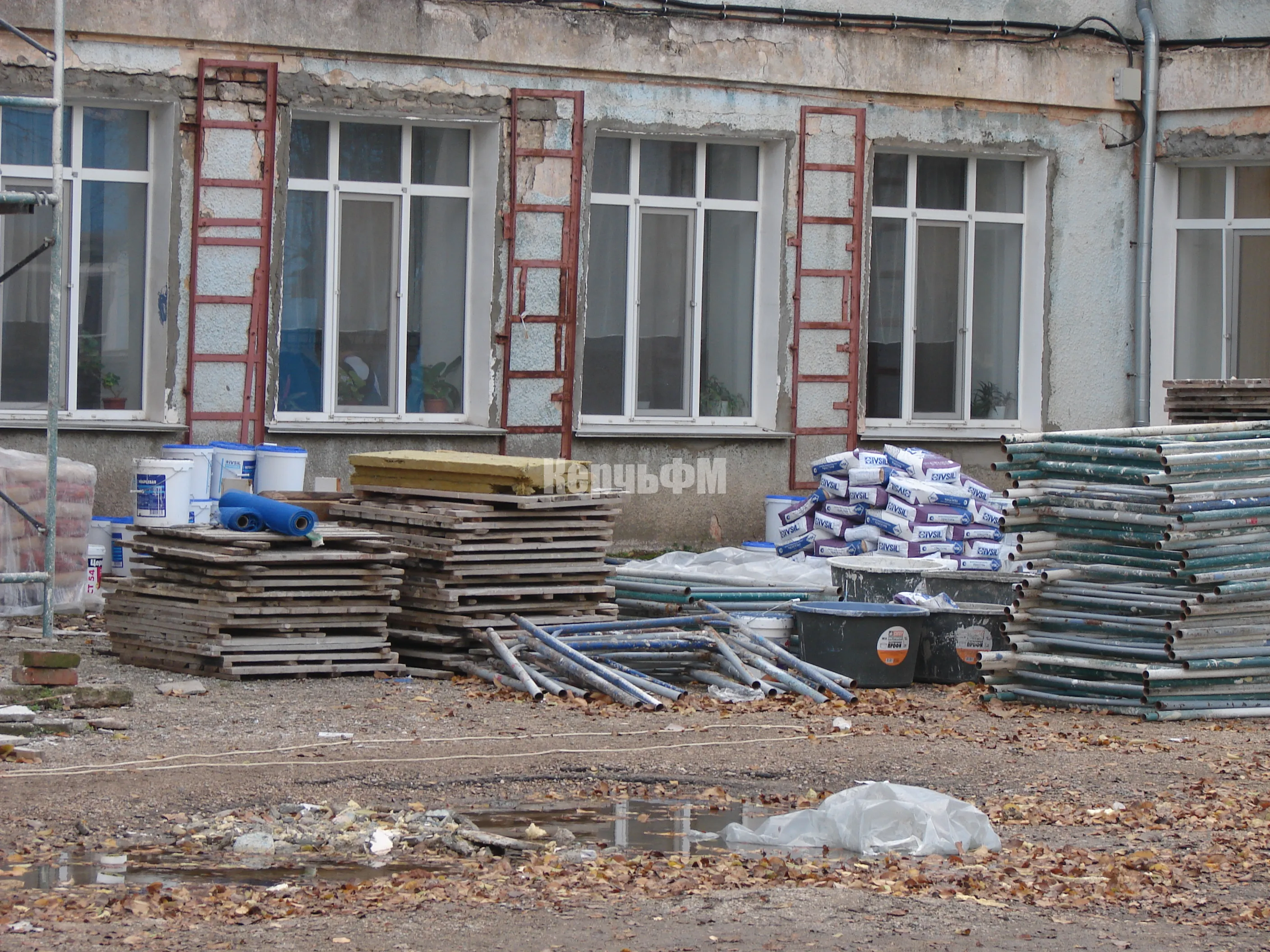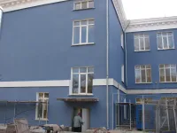 Затем подрядные рабочие приступили к ремонту фасада основного здания.