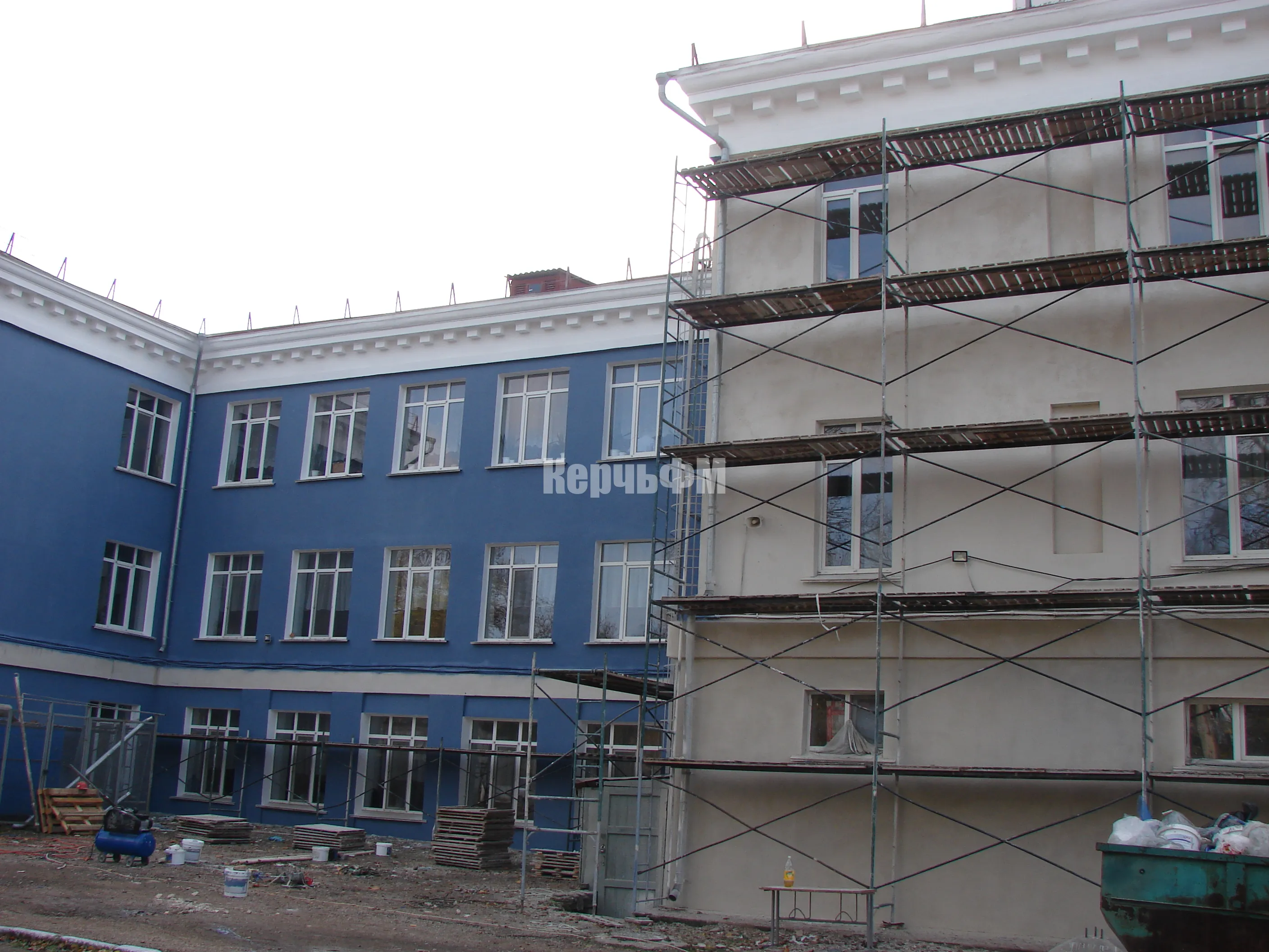 КерчьФМ продолжает освещать ход работ и напоминает, что в самом начале они были проведены на здании, где находится спортивный зал, а также кабинеты по технологии и некоторые другие.