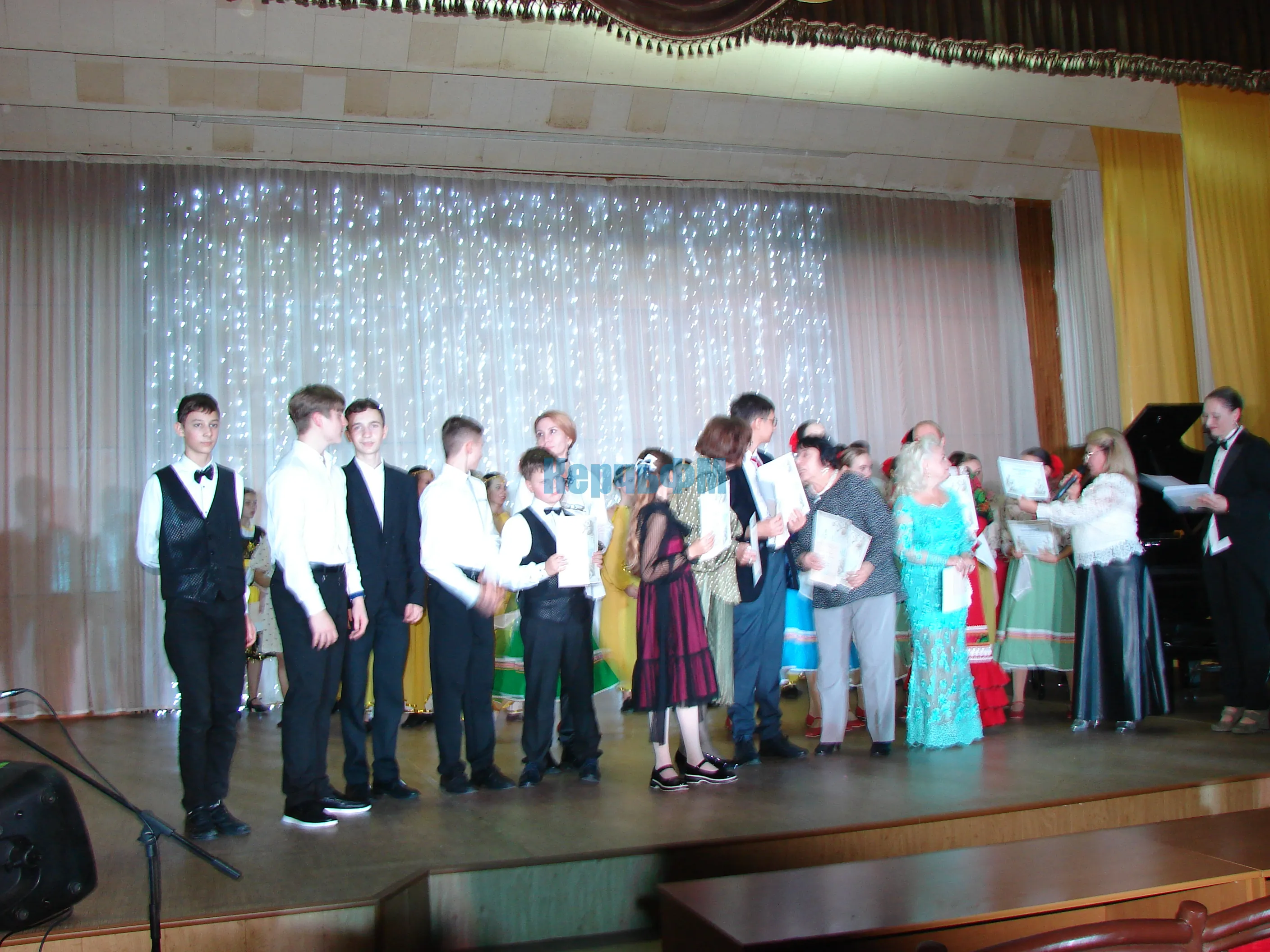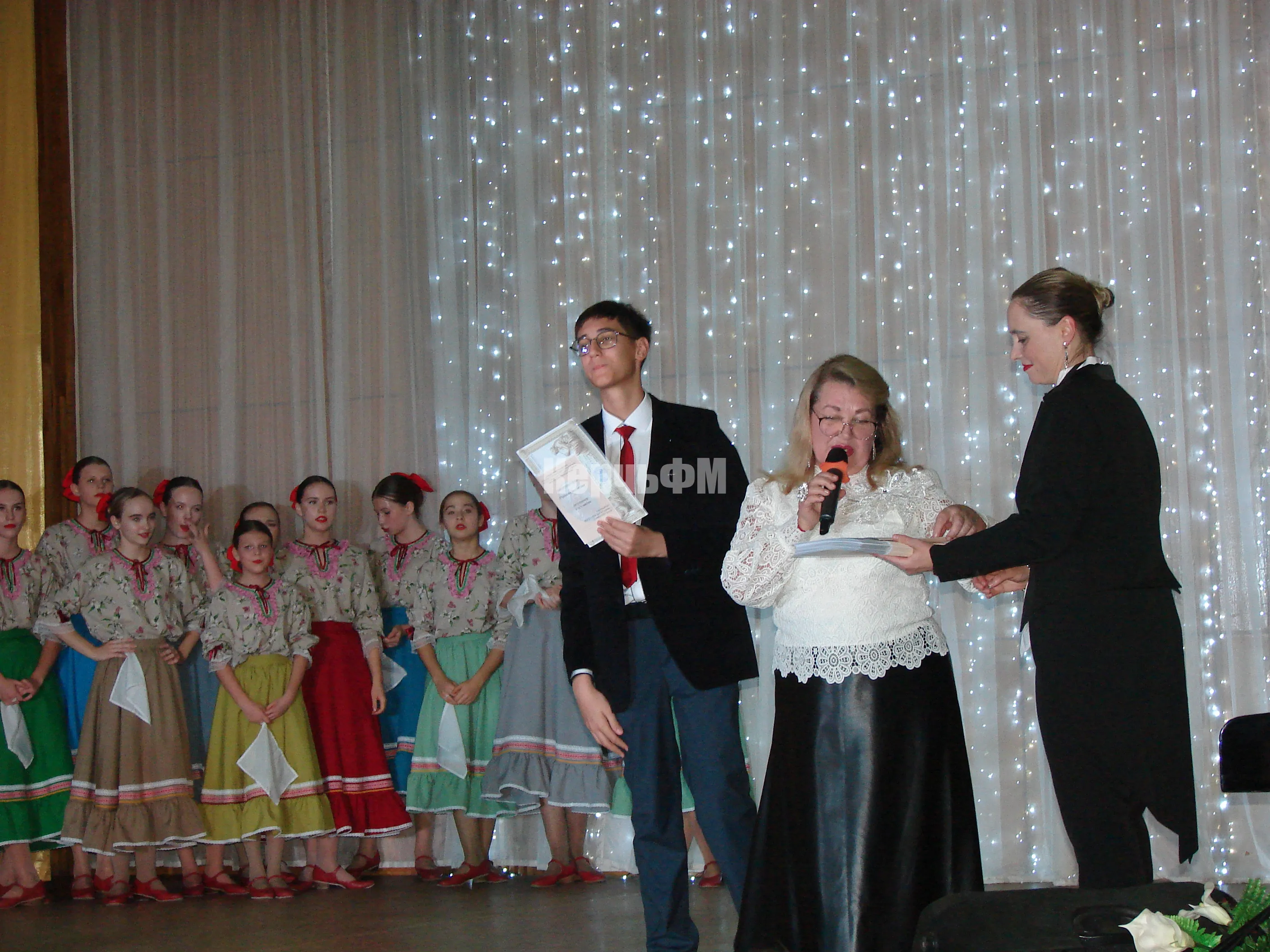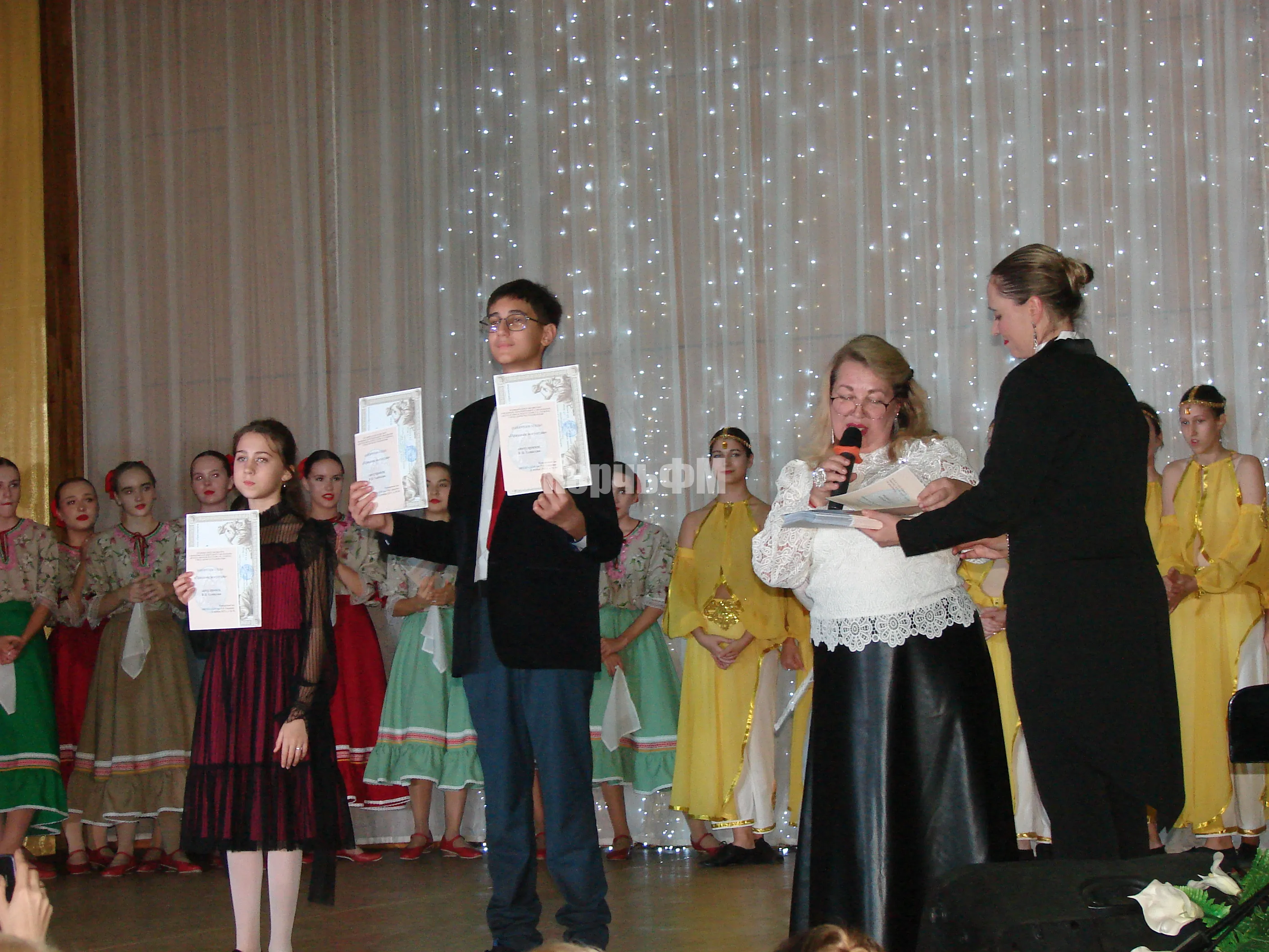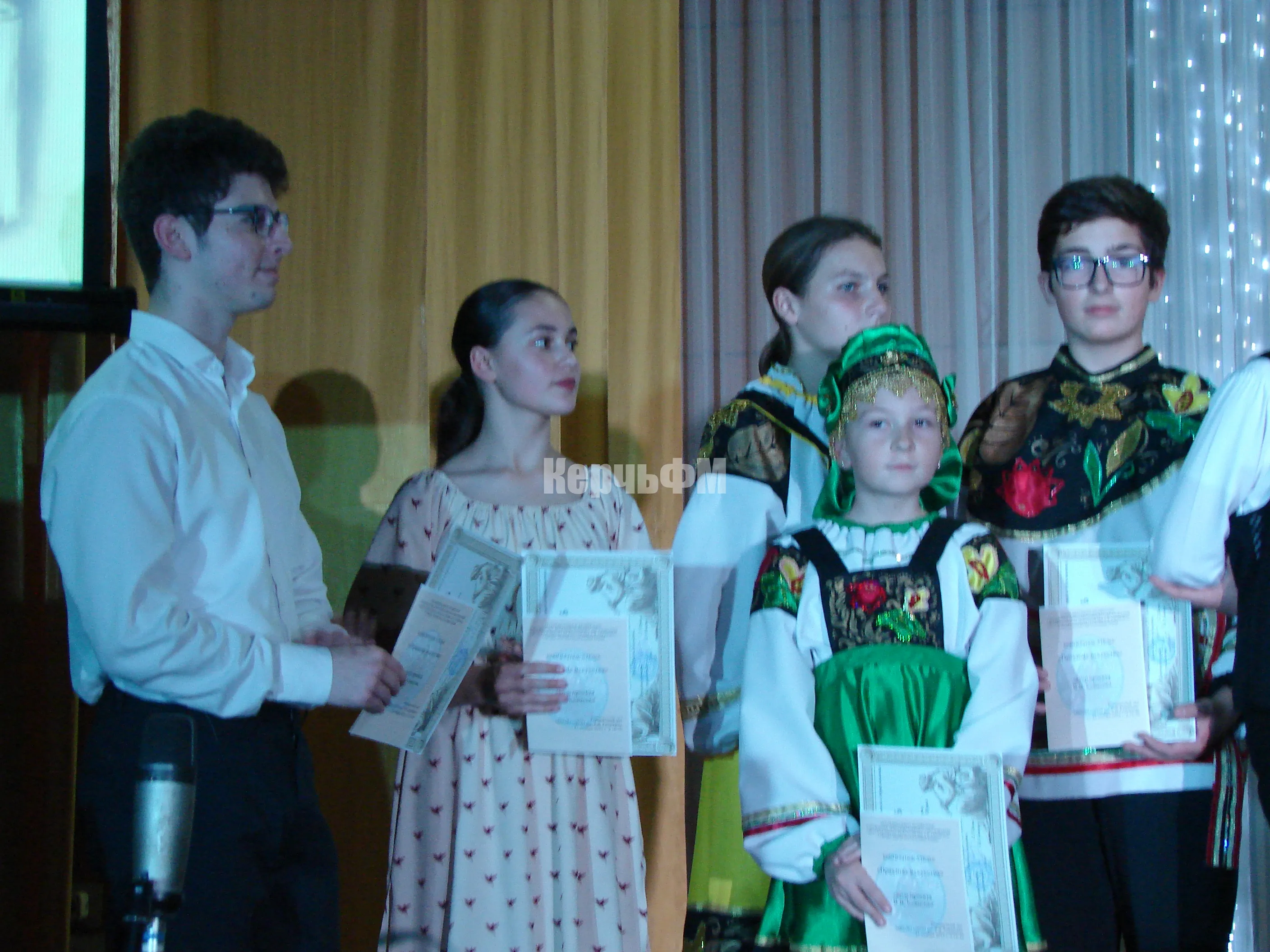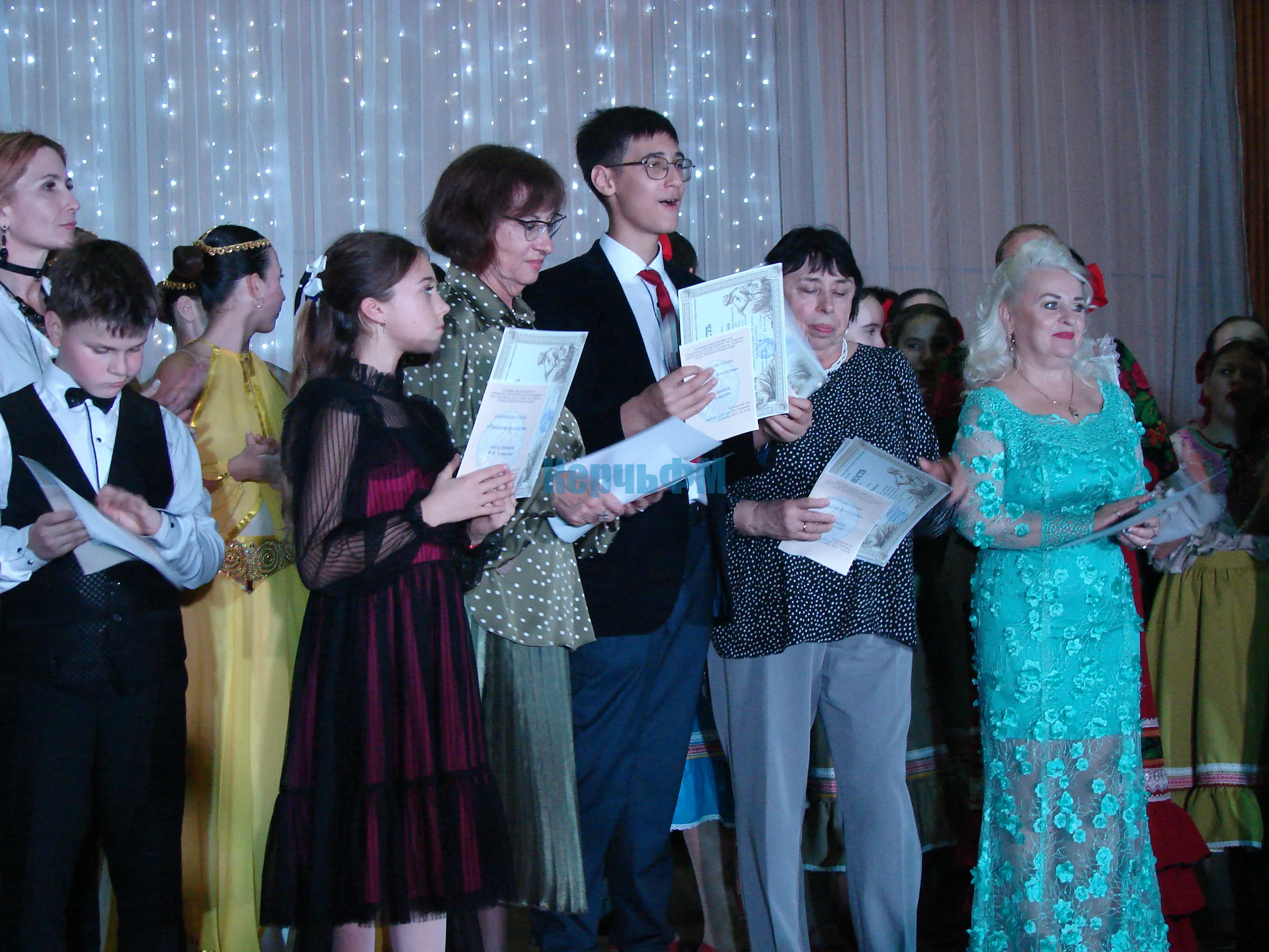 После концерта главный инициатор и художественный руководитель "Концертного ателье" Виктория Ковисова отметила самых активных участников проекта почетными грамотами и рассказала более подробно о своем проекте КерчьФМ.