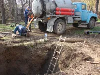 Проблемный участок сетей водовода восстанавливал сегодня керченский водоканал рядом с участком заасфальтированной дороги по улице Энгельса.