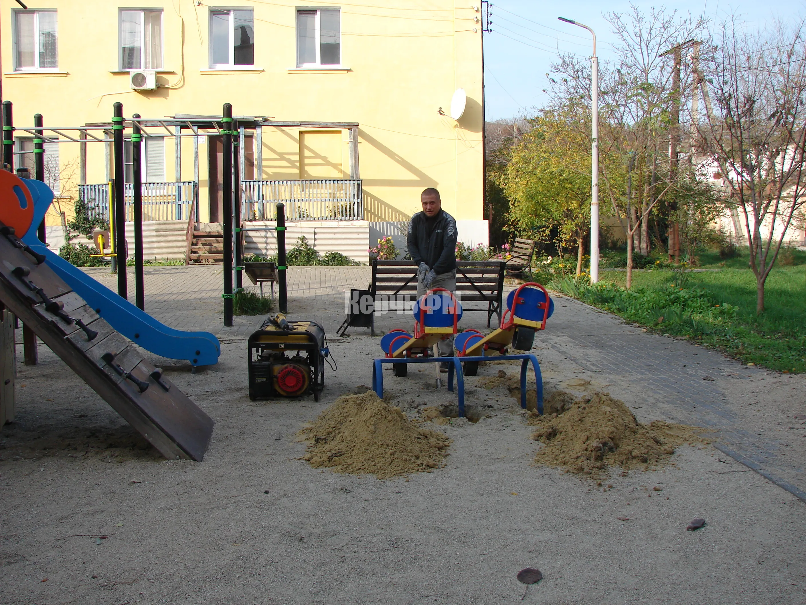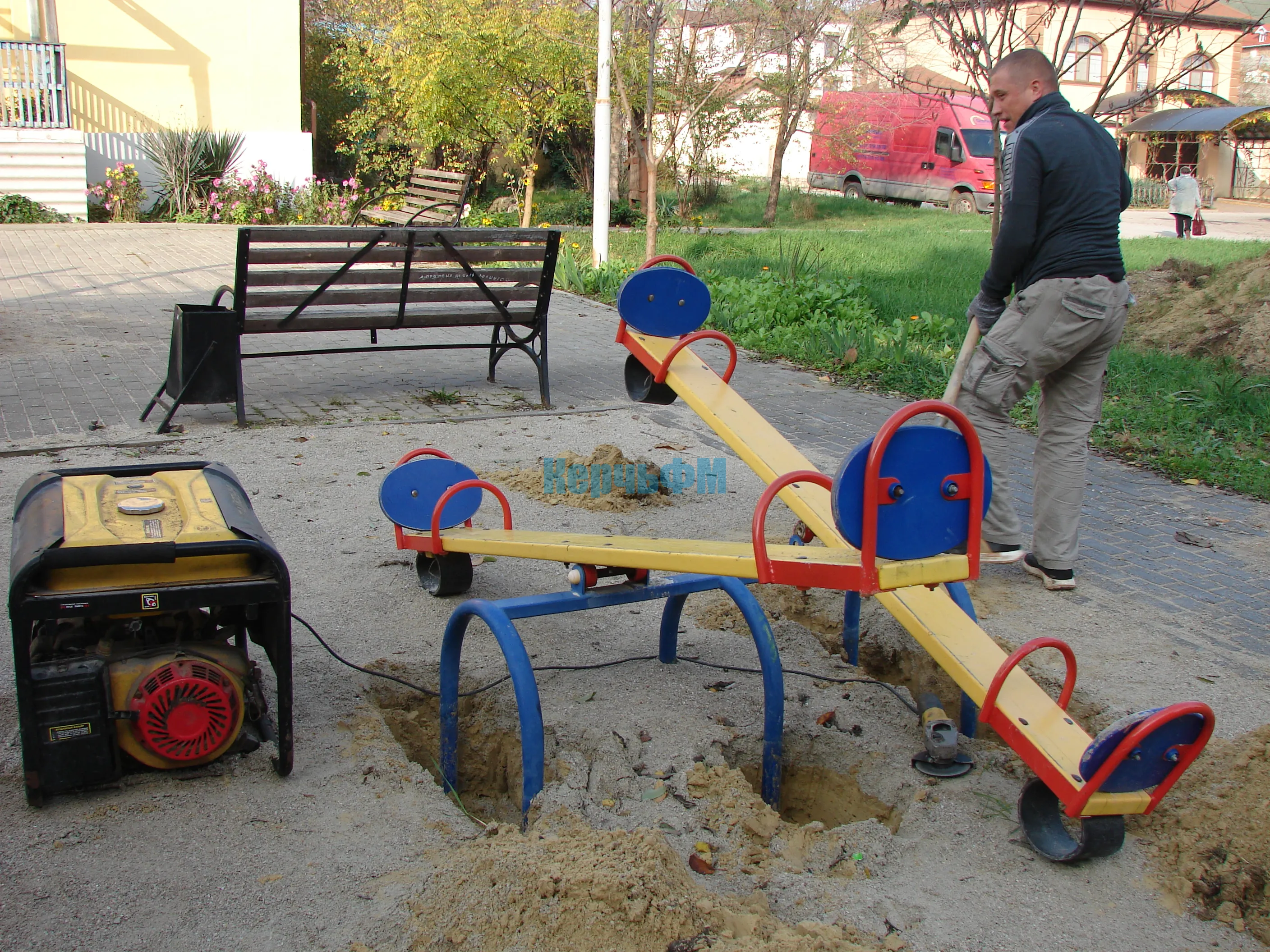 Работы по обновлению детских площадок в Керчи ведется сегодня практически во всех районах города.