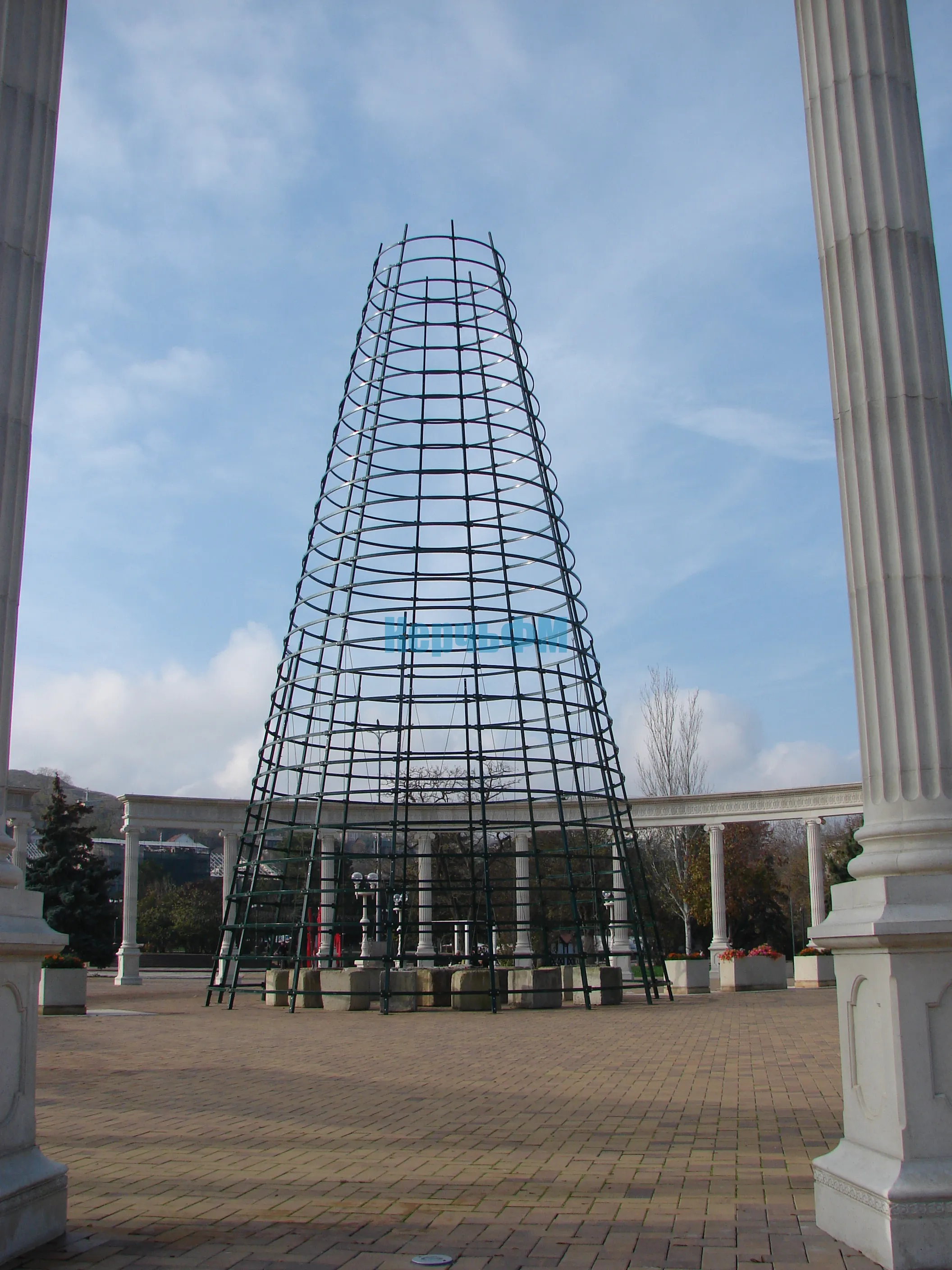 В Керчи продолжают наращивать каркас будущей новогодней елки.