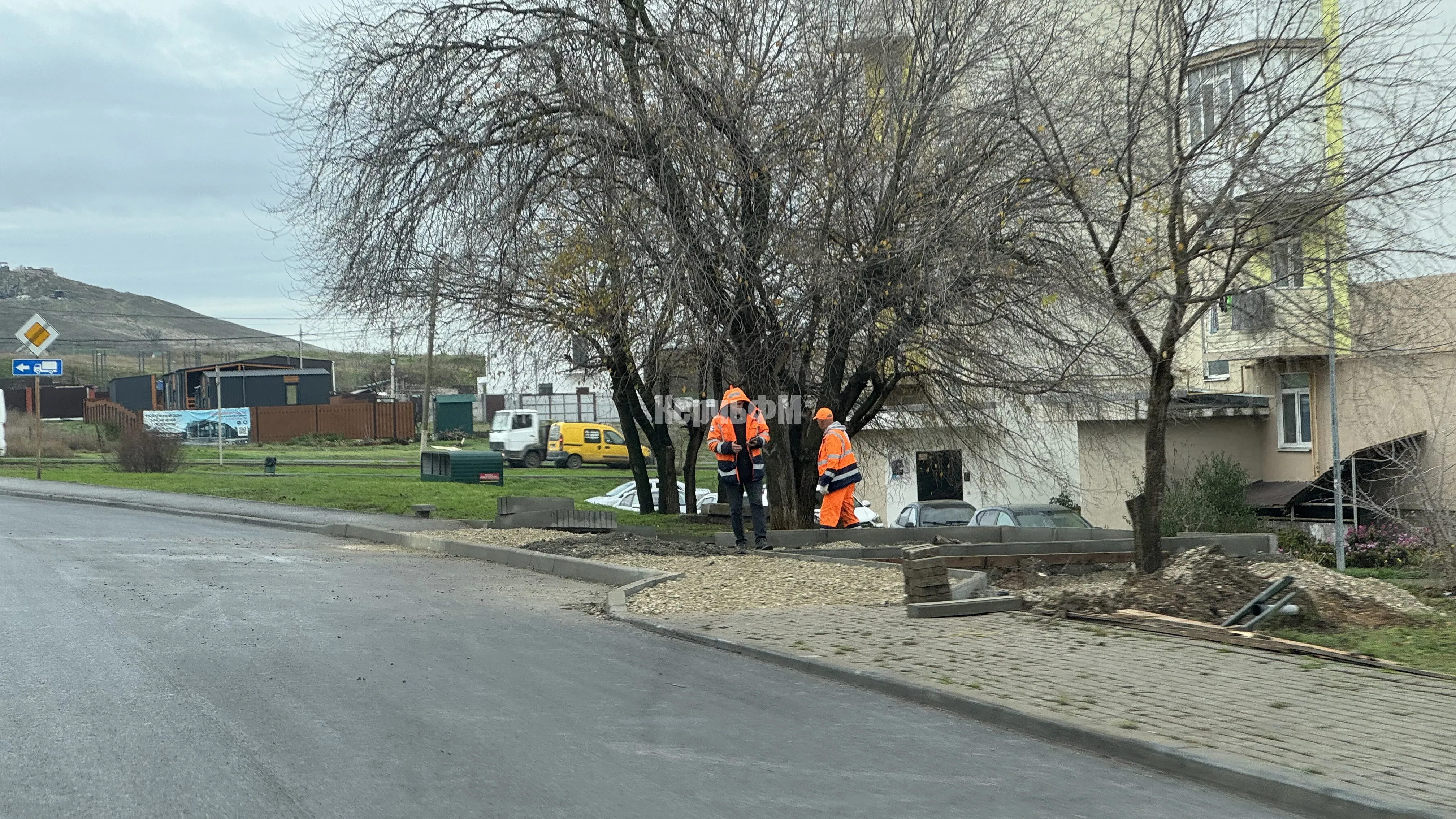 На сегодняшний день на участке продолжаются работы. Специалисты заняты благоустройством территории около будущих остановочных павильонов.