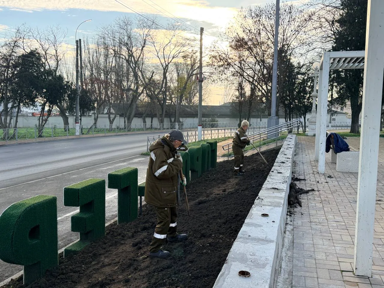 Специалисты уделяют внимание кронированию и санитарной обрезке растений, следят за состоянием клумб. Специалисты работали на территории у инсталляции «Город-герой Керчь» на Адмиралтейском проезде. Для клумбы была выполнена подсыпка и разравнивание нового земельного грунта. Это было необходимо, так как существующая почва имеет свойство смываться дождями и оседать. Дополнительный грунт подготовит клумбу к последующей высадке цветов.