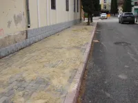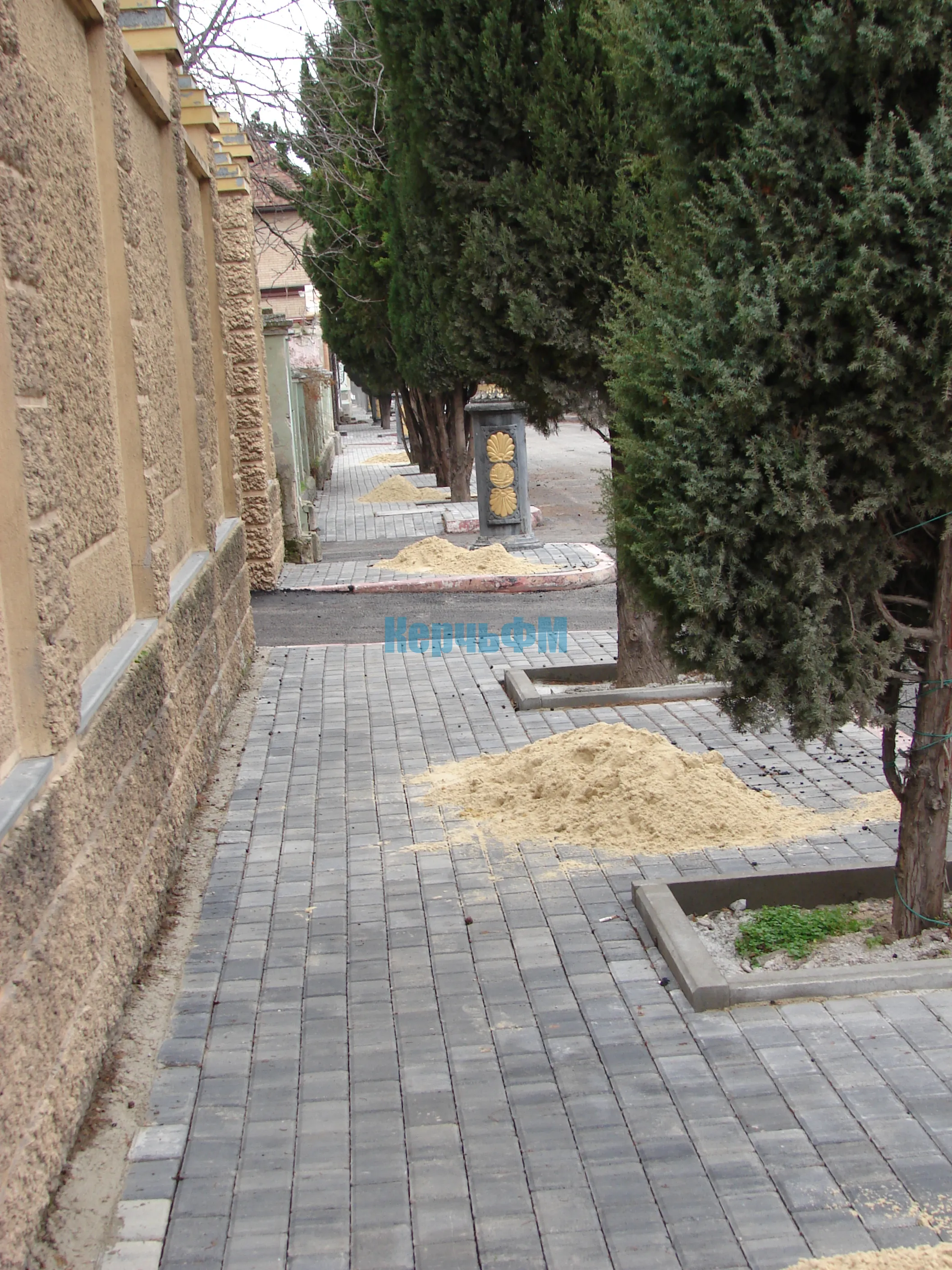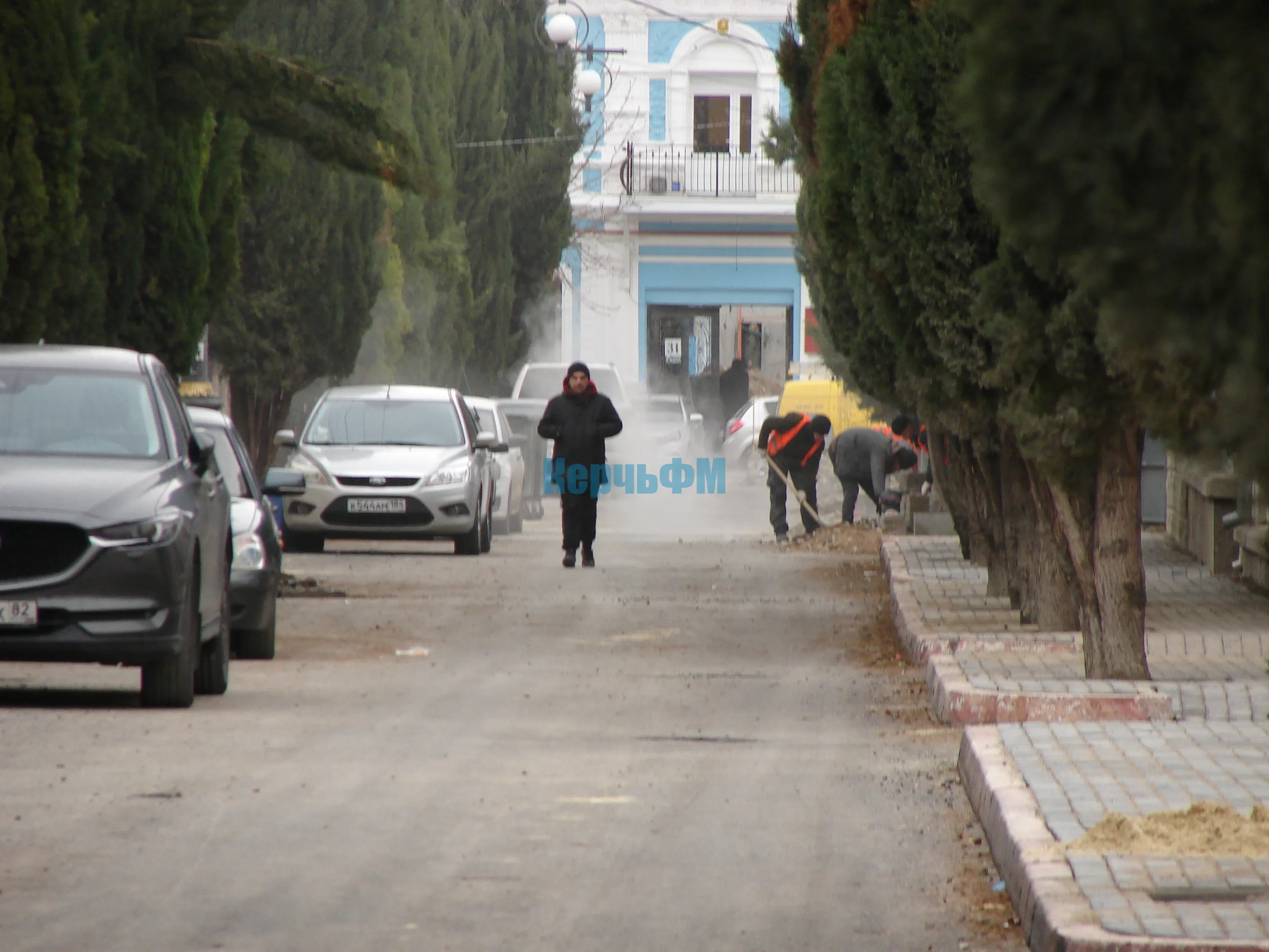 В настоящее время на них рассыпают песок для того, чтобы забить им щели между плитками и укрепить мощение тротуара в целом, передает КерчьФМ.