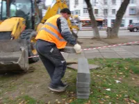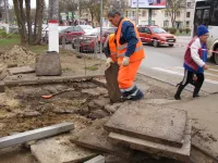 Во время проведения работ по укладке в грунт новых труб магистрального водовода по улице Войкова был разрушен тротуарный подход к пешеходному переходу у остановки "Казакова".