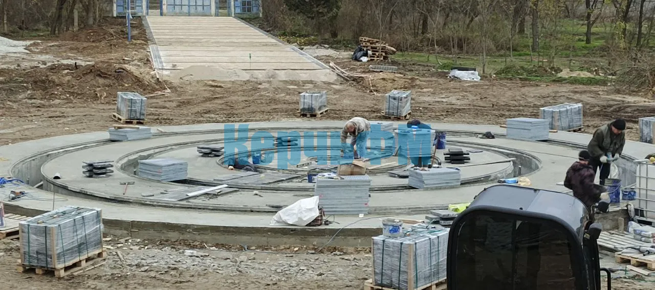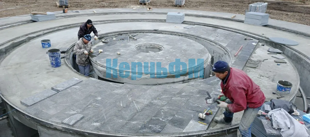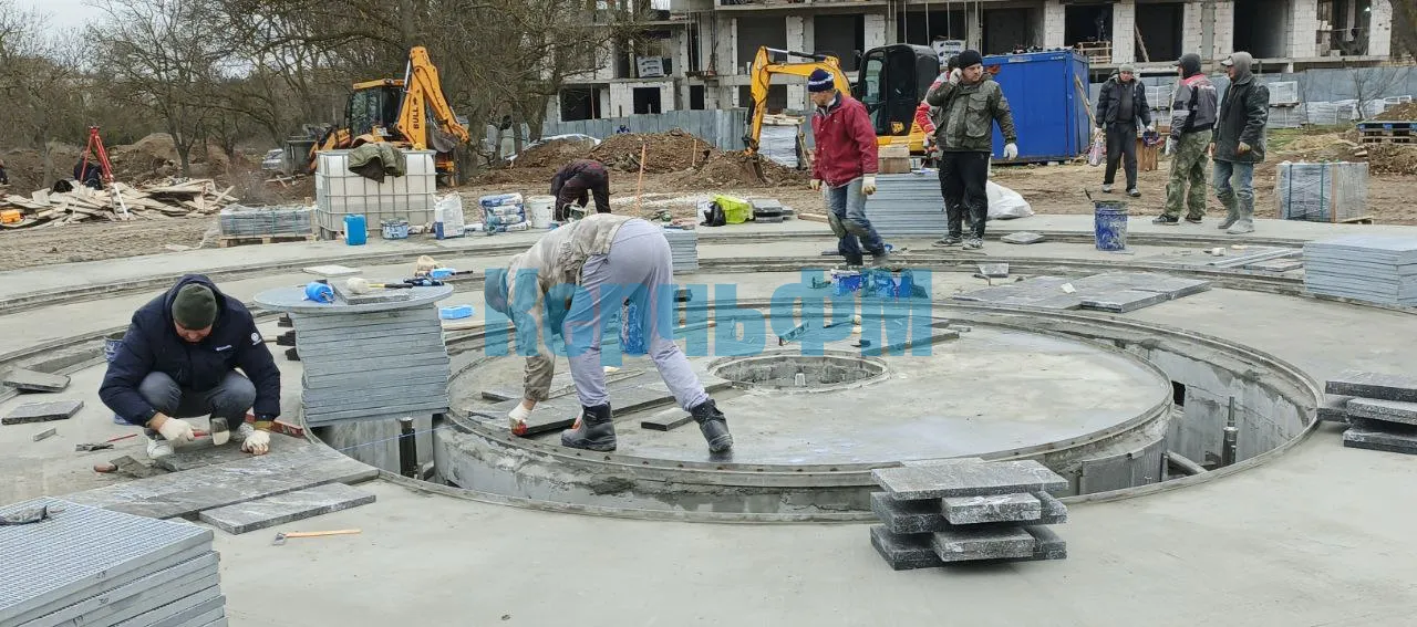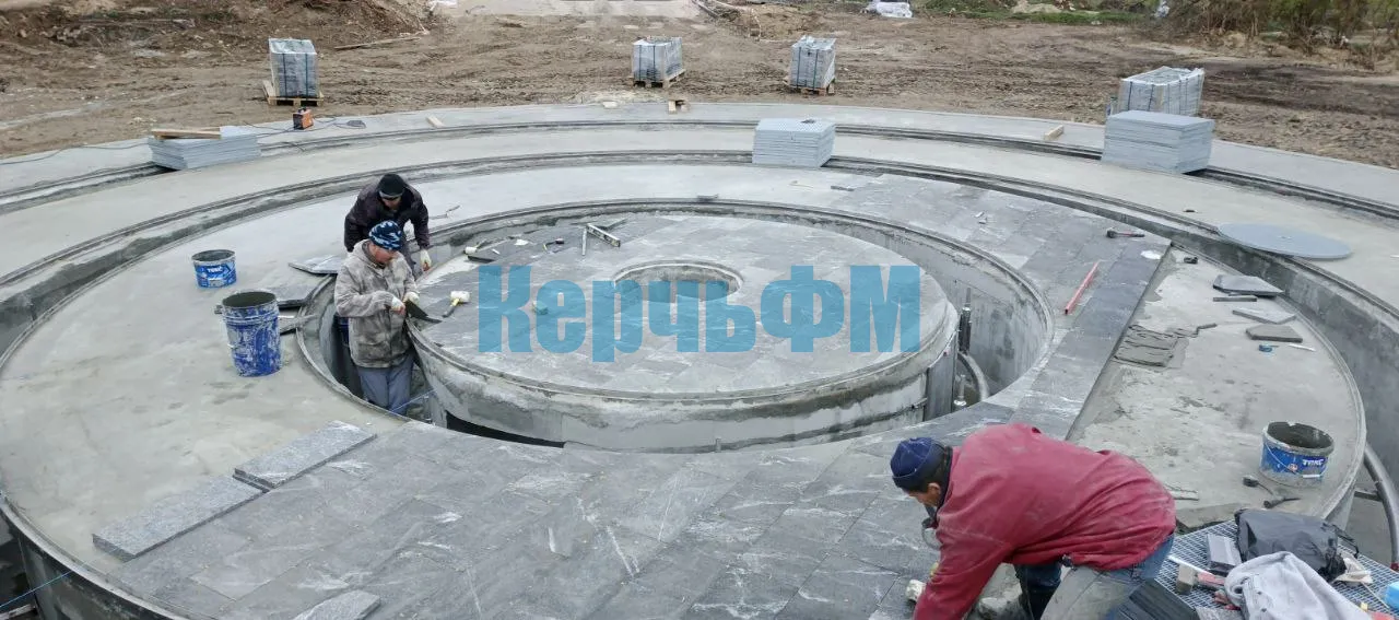 Строители фонтана в Приморском парке приступили к облицовочным работам, передает КерчьФМ.