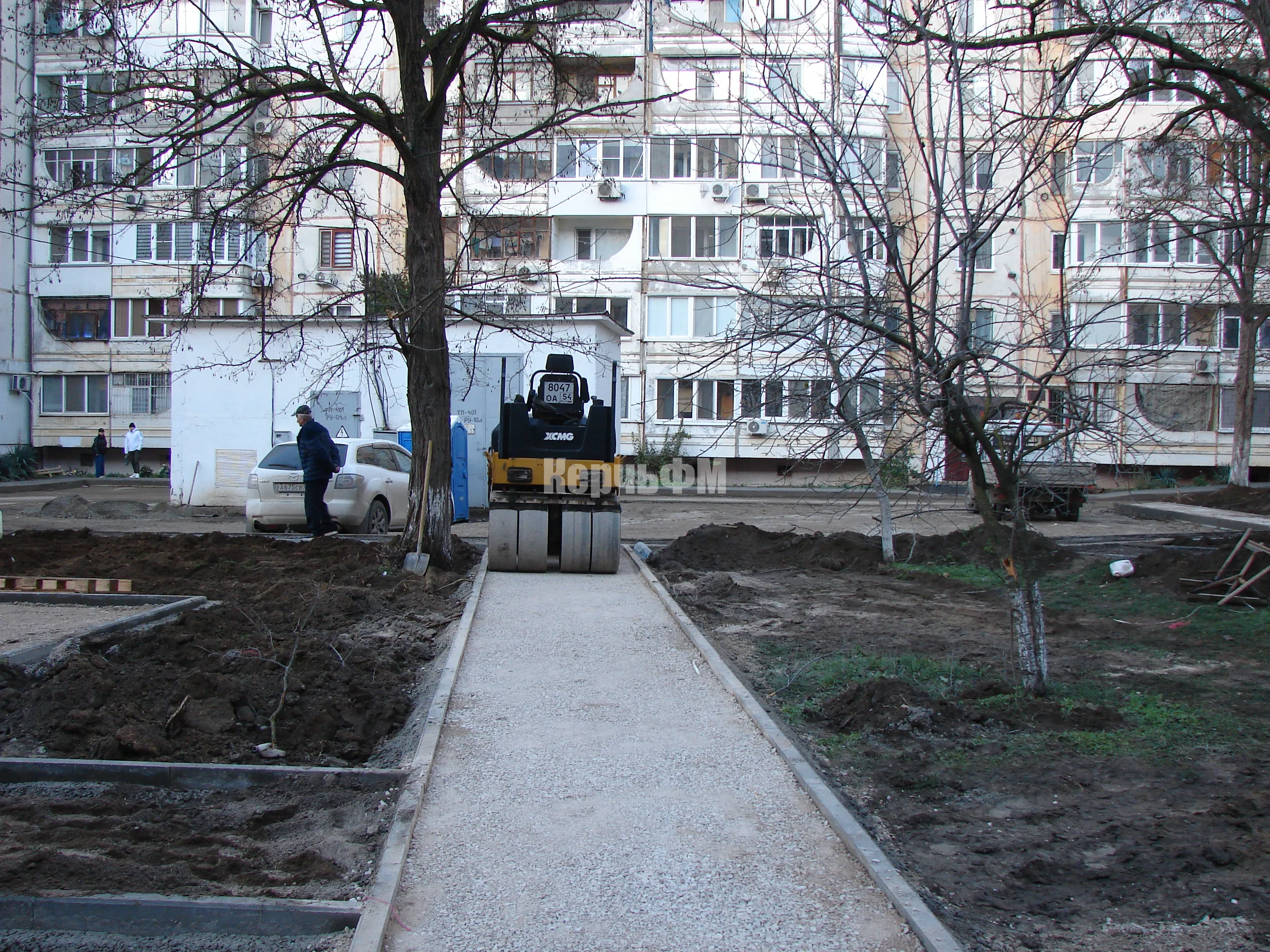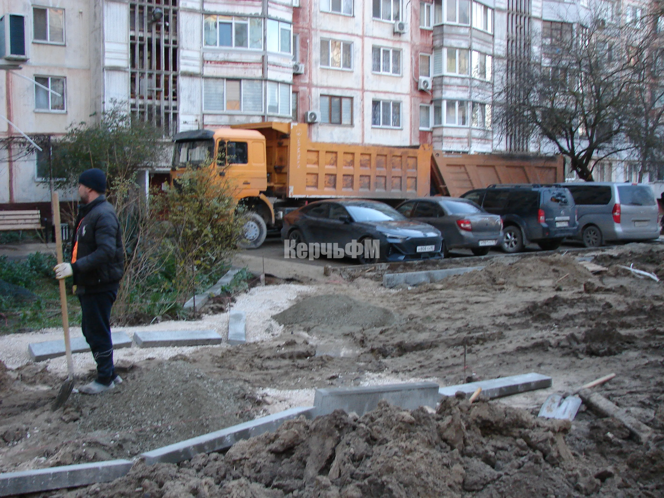 На придомовой территории района МКД по Генерала Петрова, 16 в Керчи асфальтируют парковки