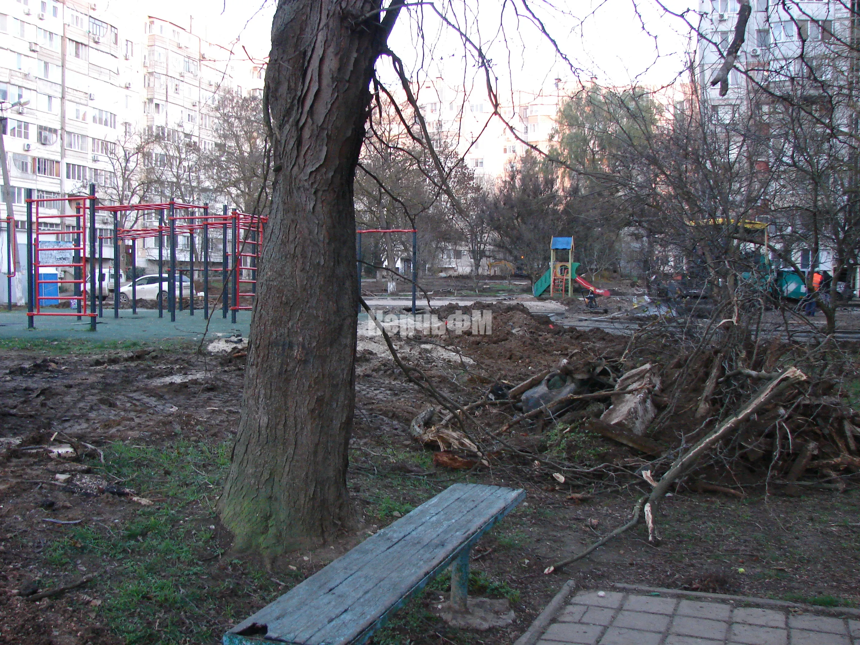 В большом дворе четырех высотных домов по Генерала Петрова, 16, 18, 20 и Сморжевского, 3 продолжается благоустройство территории.