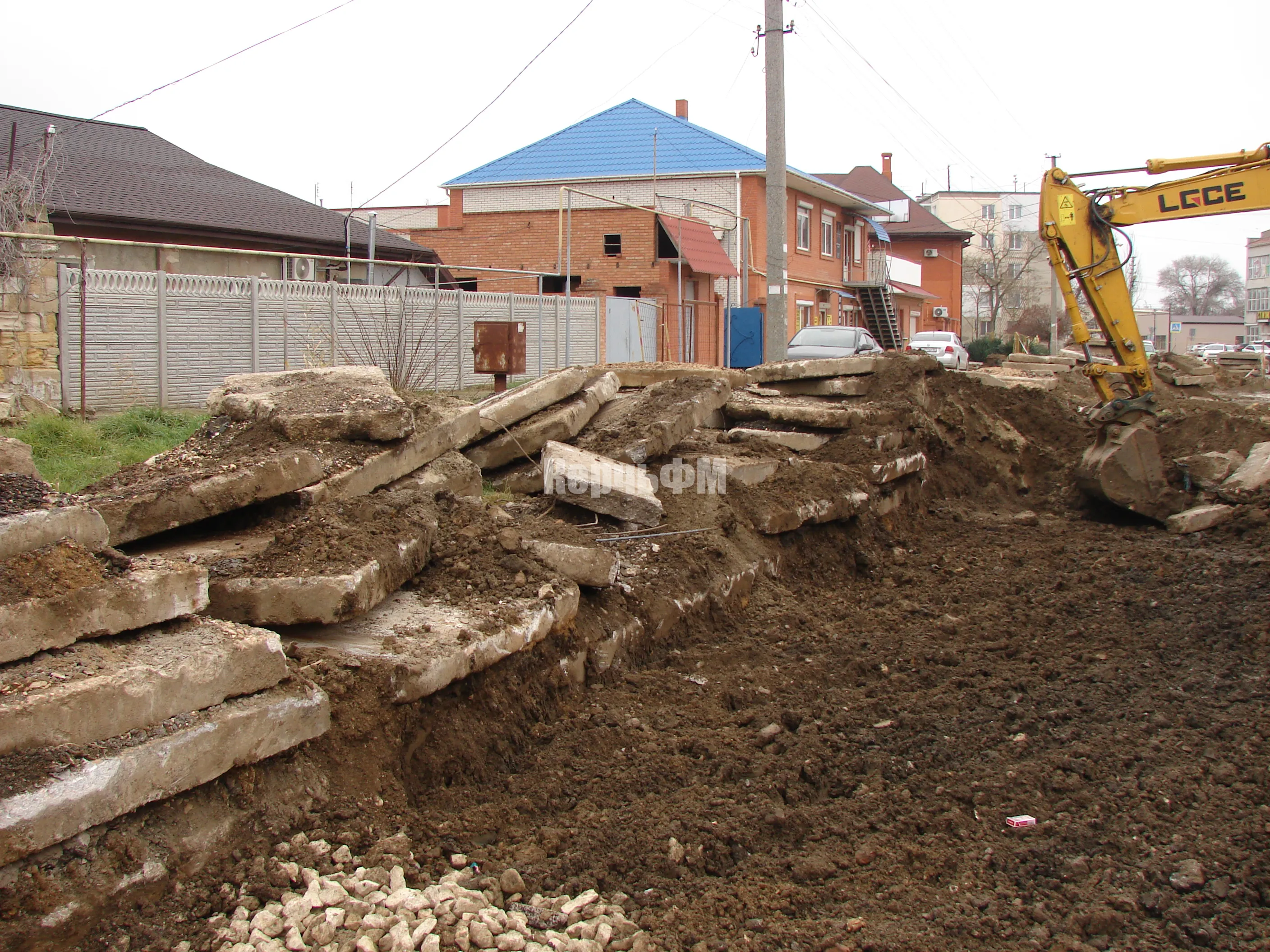 В настоящее время работники подрядной организации произвели засыпку разрытия щебнем, вывезли с проезжей части грунт и ликвидируют оставшиеся ямы на Полевой.