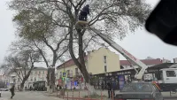 В Керчи на улице Самойленко производят обрезку деревьев. Место работ, около пешеходного перехода, оградили сигнальной лентой, - передает КерчьФМ