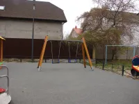 Причем, опоры для качелей стоят уже неделю, а про сами качели устроители забыли.