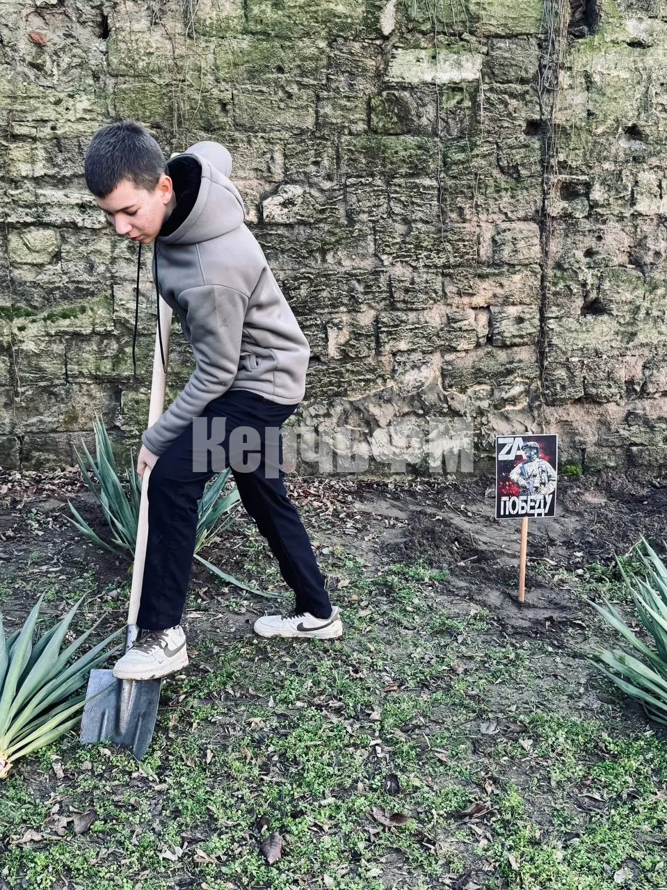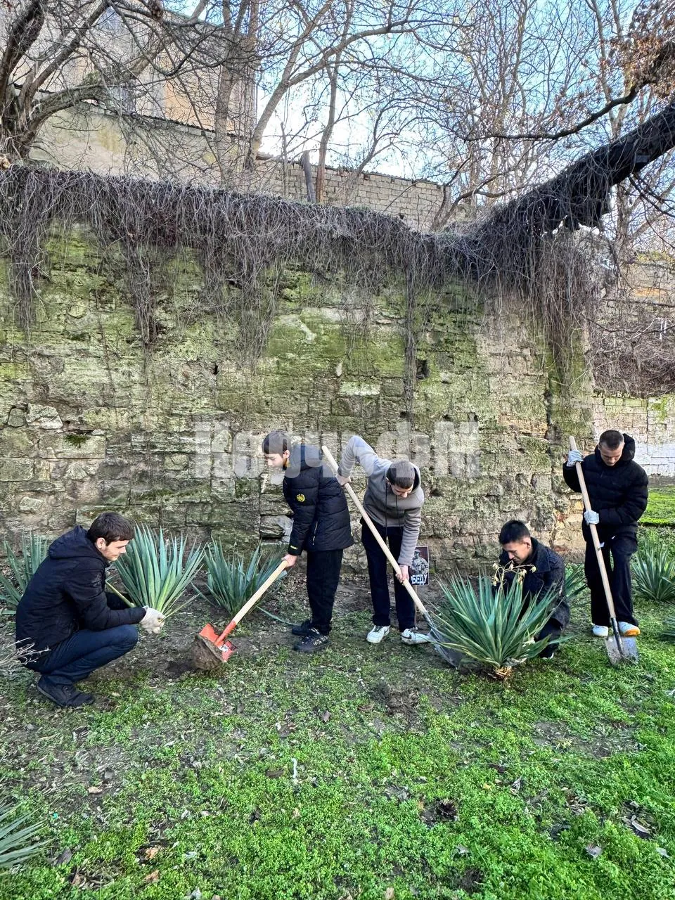 Ученики 9-х классов керченской школы №9 под руководством известного волонтера Инги Кулик высадили юкки на территории своего учебного заведения.