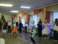 Они с удовольствием танцевали с Дедом Морозом, отгадывали загадки, играли в прятки и веселились.