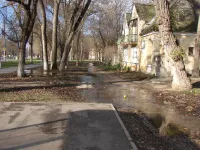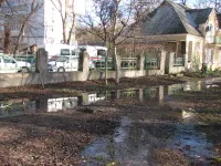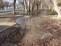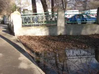 У станции скорой помощи, которая находится рядом с остановкой "Фабрика-Кухня", сегодня произошел порыв водовода.