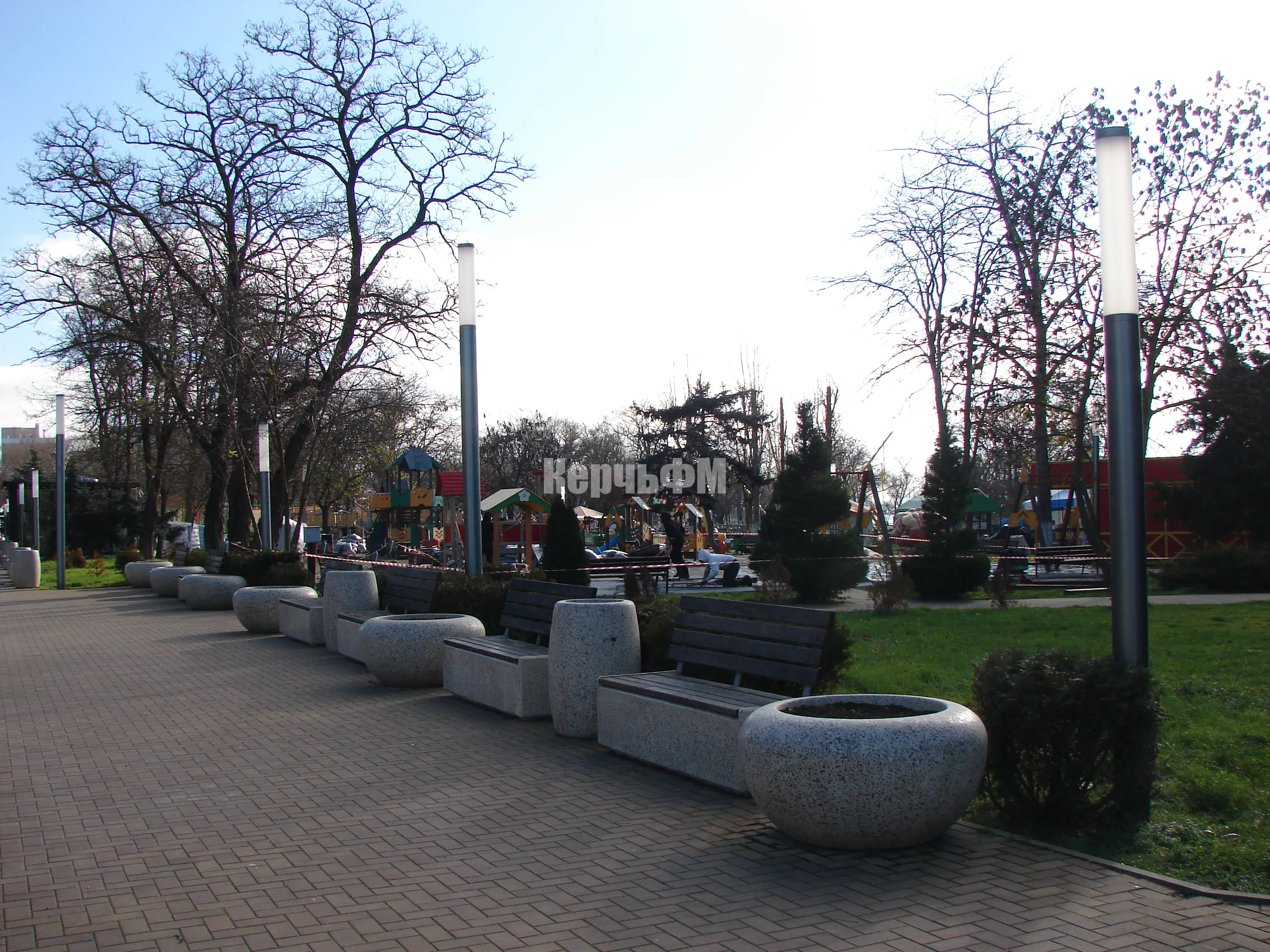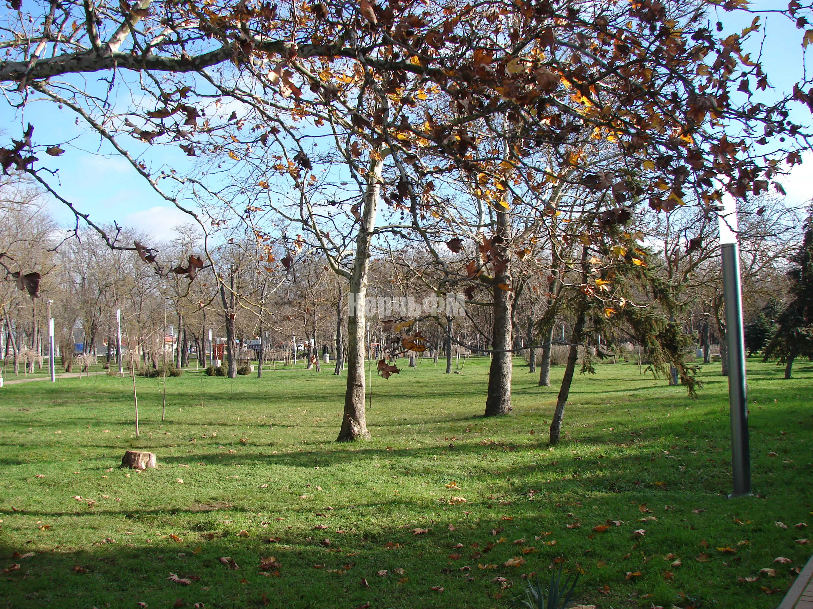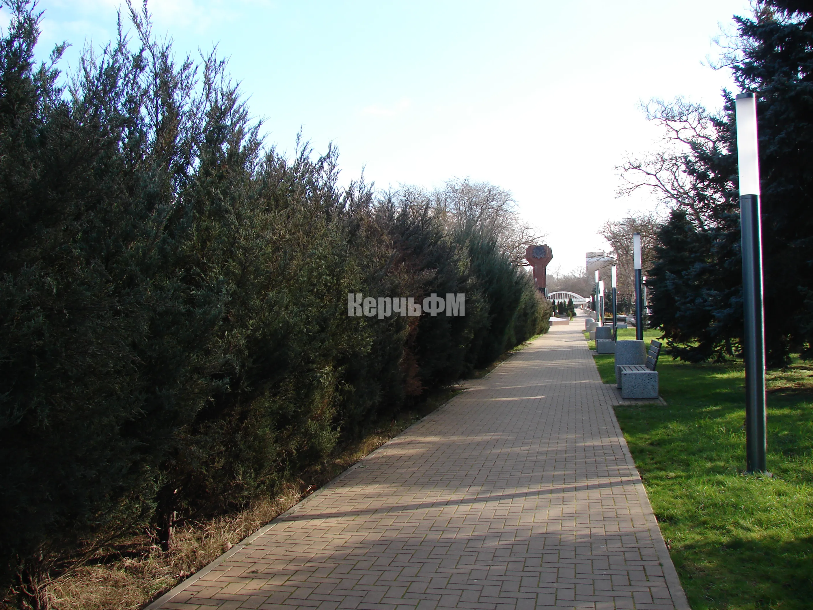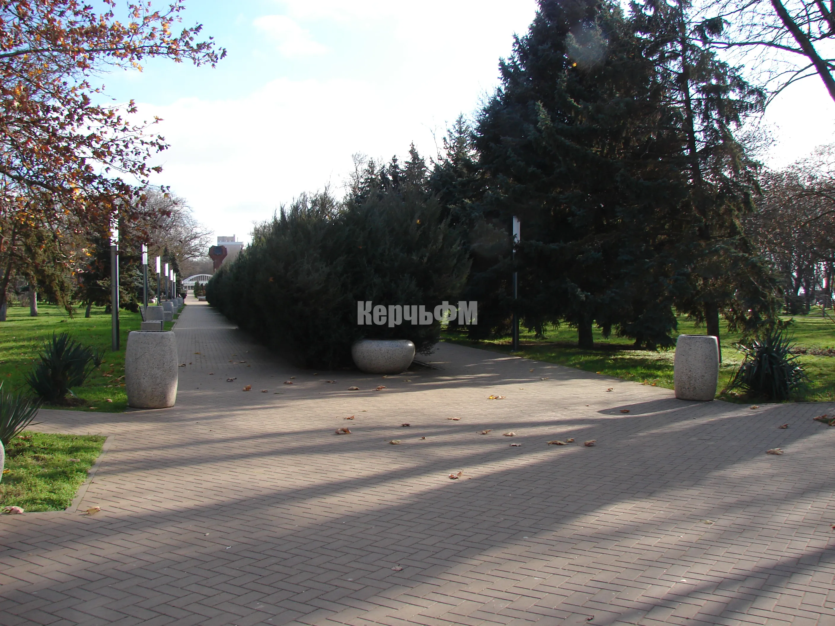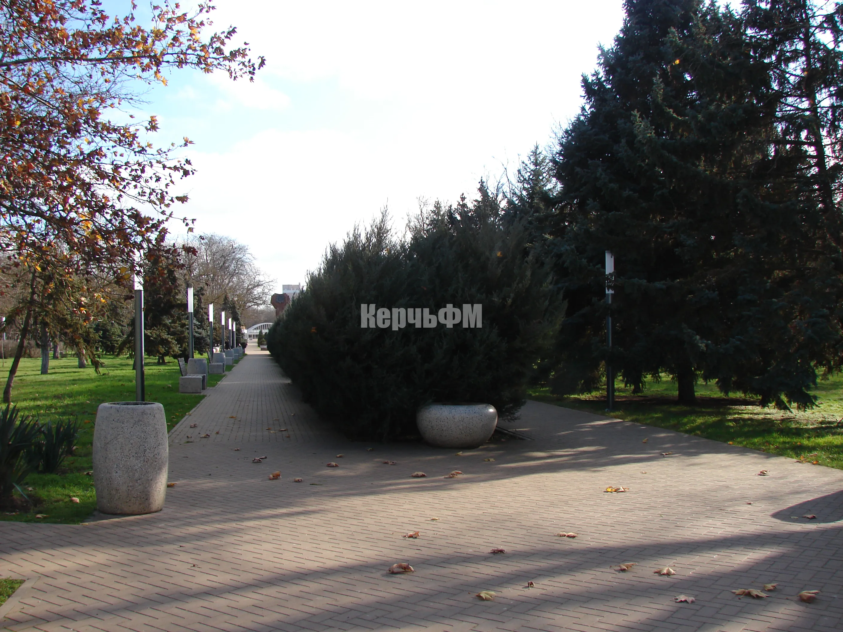 Комсомольский парк в предновогодние дни выглядит по-летнему зеленым.