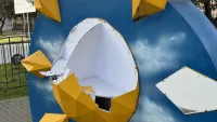 Судя по характеру повреждений, инсталляция могла пострадать из-за действий неизвестных лиц. При этом мер по её ремонту или восстановлению пока не предпринимается.