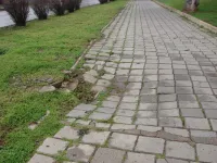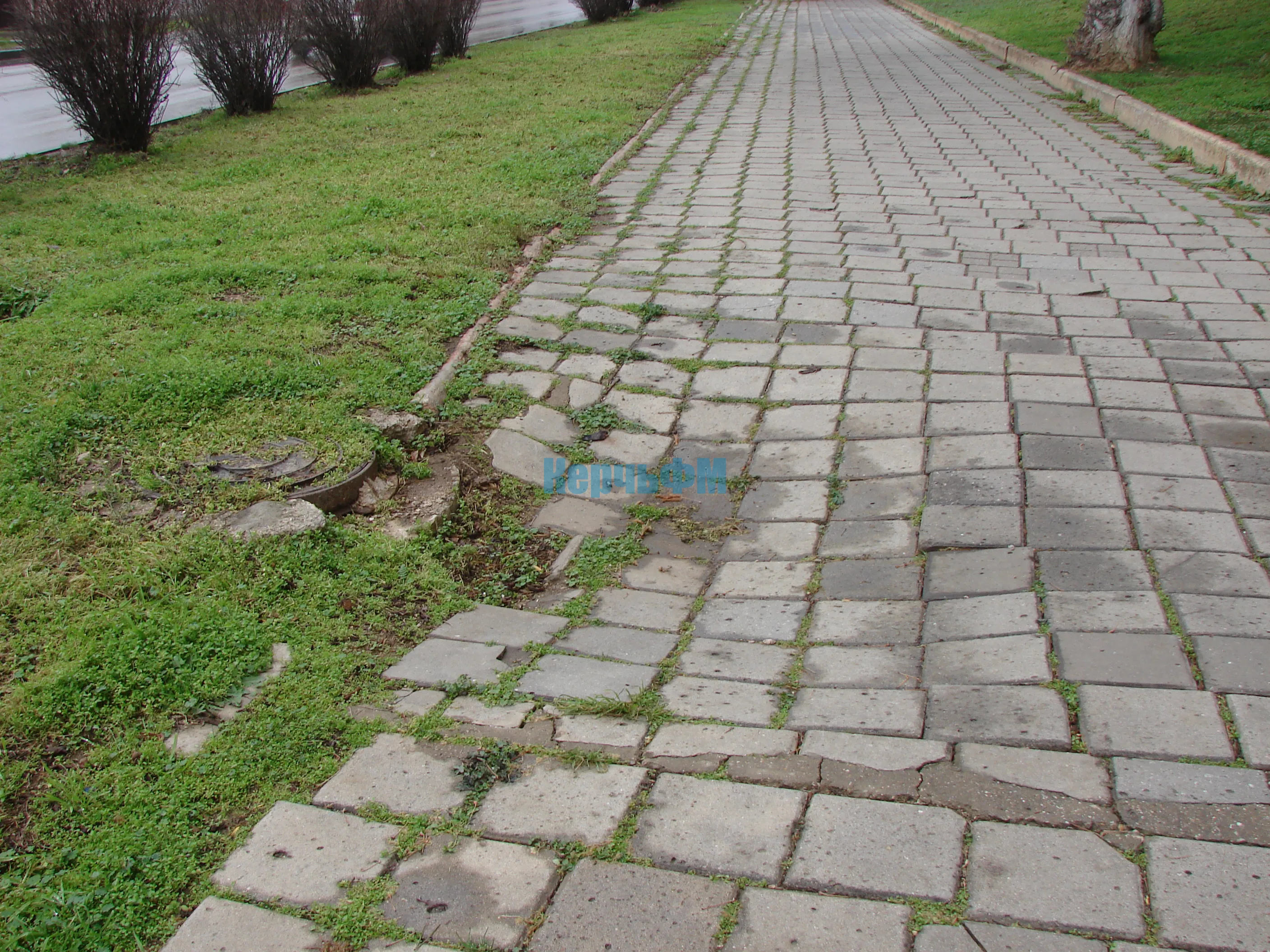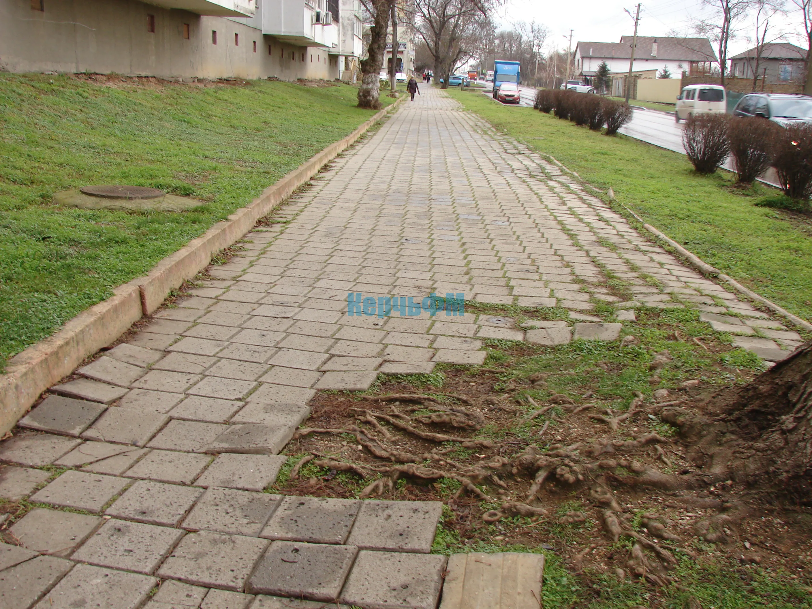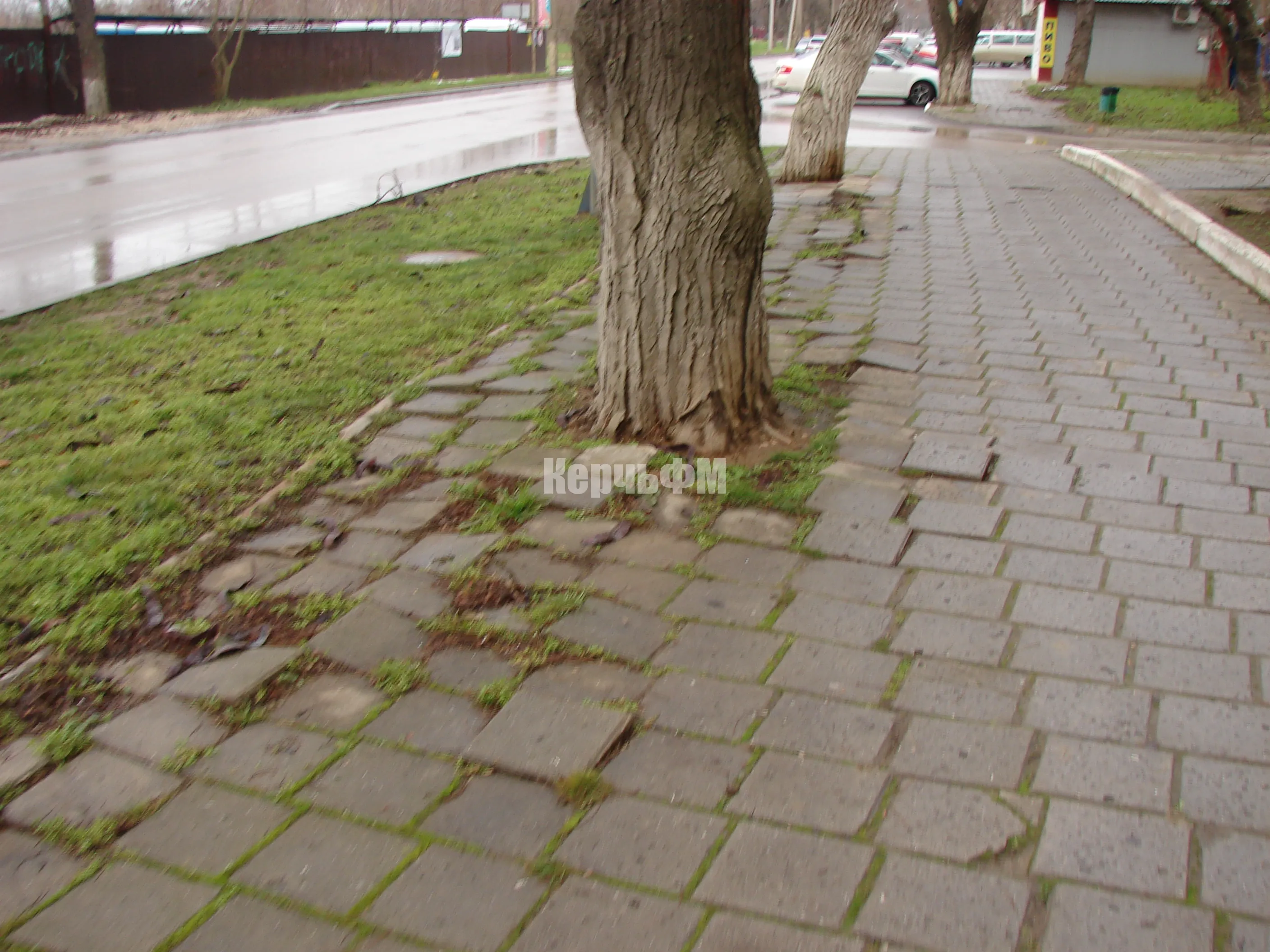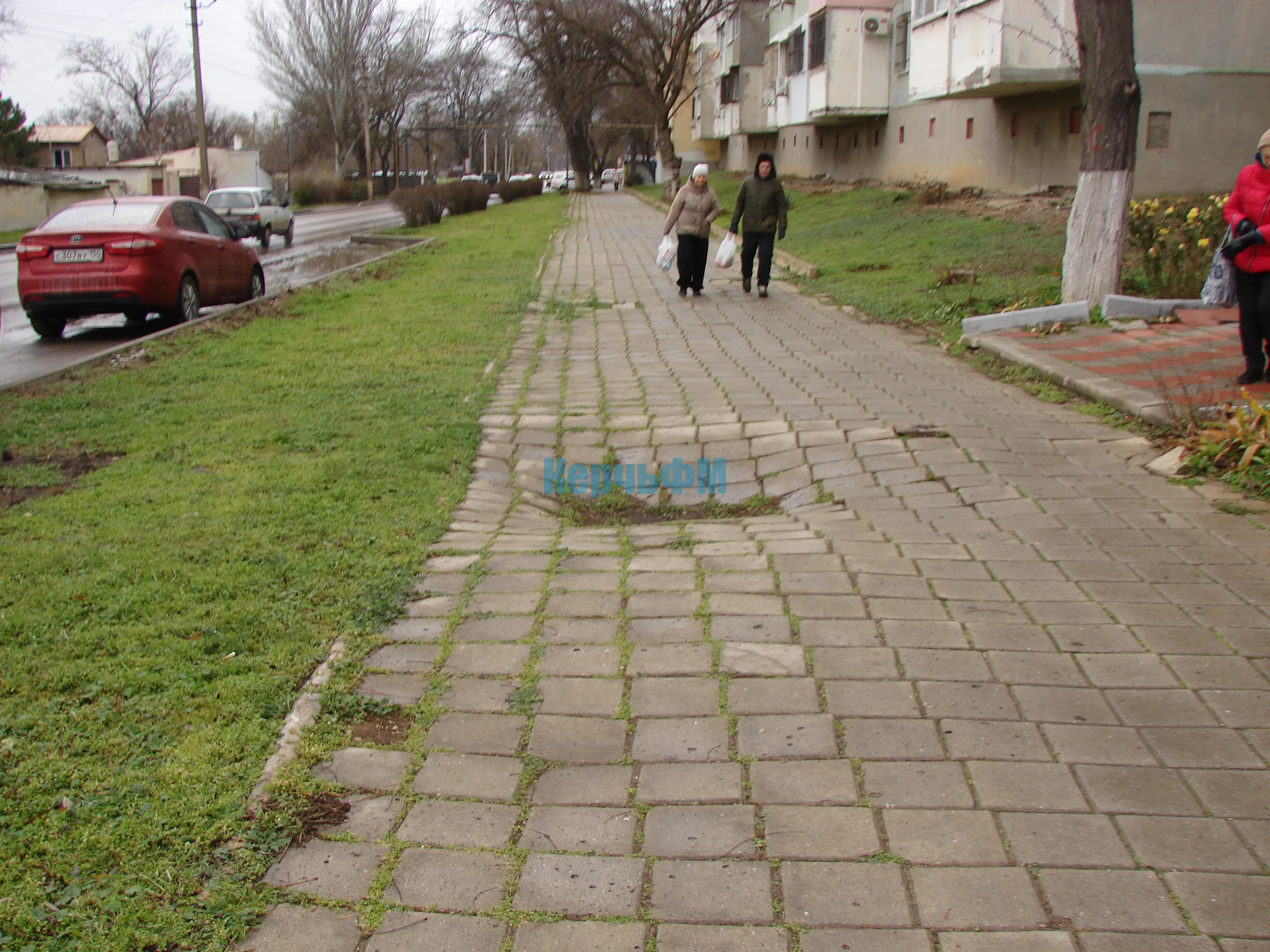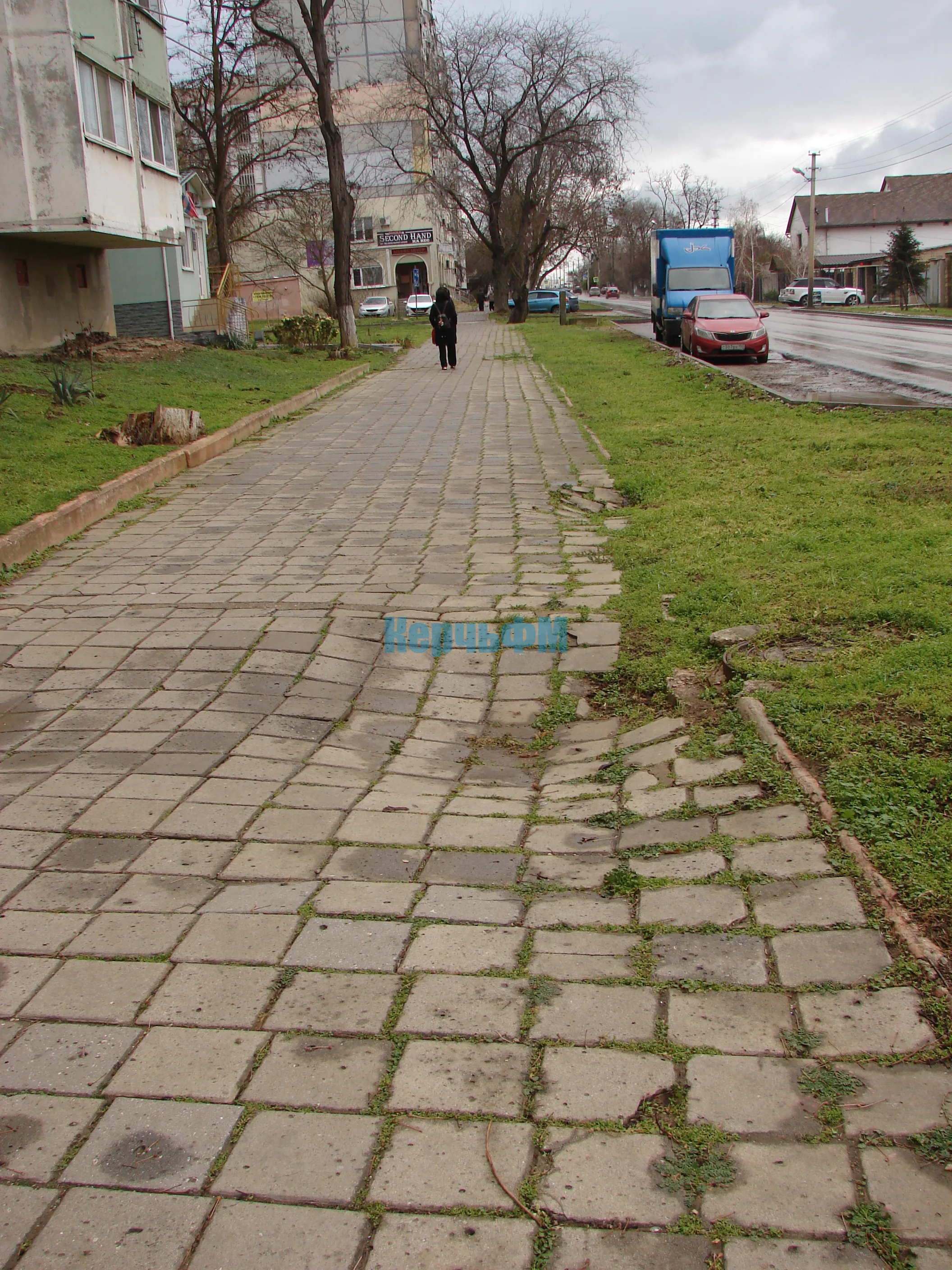 Тротуар вдоль дома по Кирова, 111 в Керчи: сплошные провалы