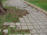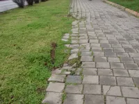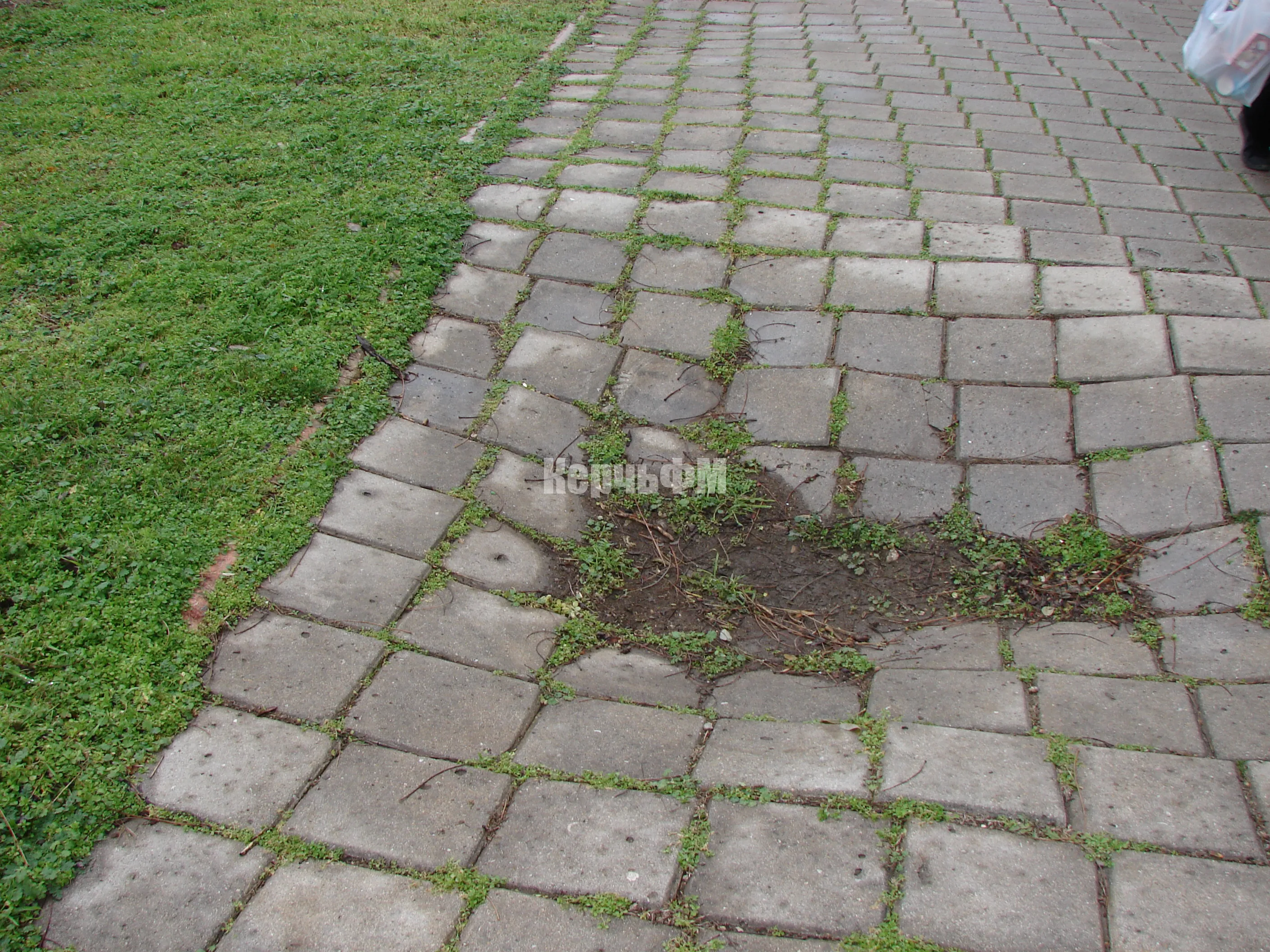 Ямы после корчевки засыпали землей и сверху положили плитку.