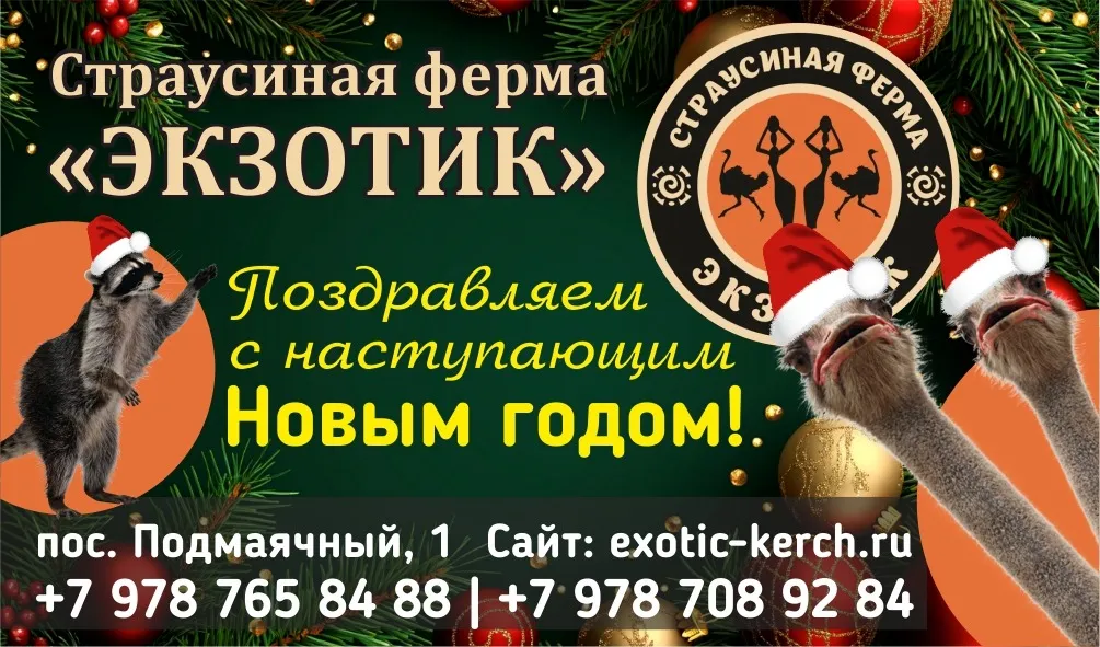 Страусиная ферма "Экзотик" спешит поздравить вас с Новым годом! Пусть этот год подарит вам множество ярких впечатлений, незабываемых моментов и удивительных открытий.