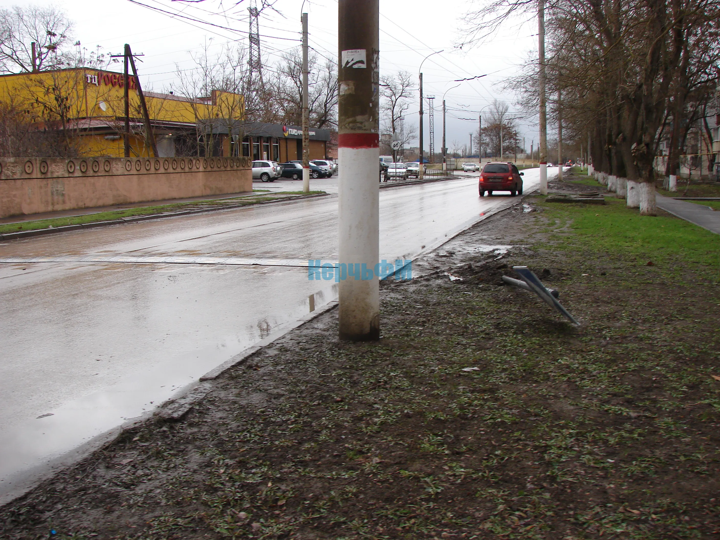 Знак лежит там, где должен стоять.