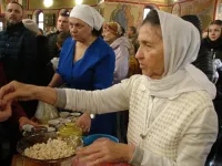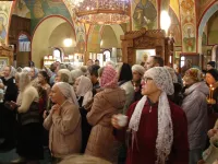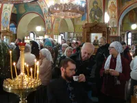 Прихожане слушают проповеди, читают молитвы, затем причащаются.