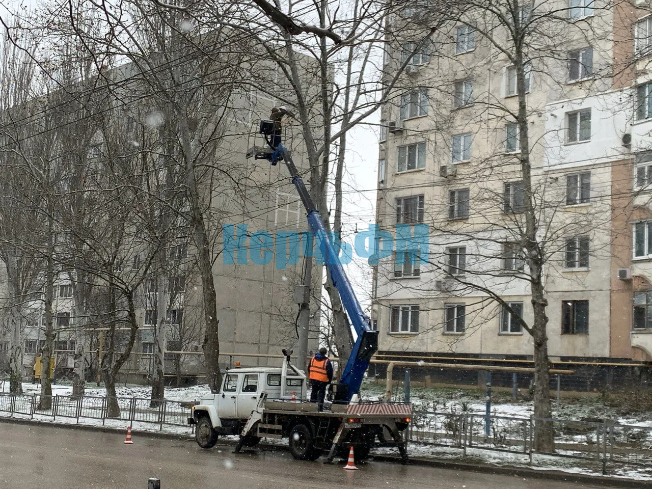 Сегодня предприятие «Горсвет‑Керчь» проводило плановые работы по обслуживанию и ремонту сетей наружного освещения вдоль троллейбусной линии на улицах Горького и Генерала Петрова.