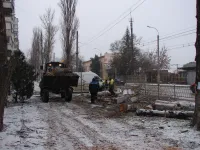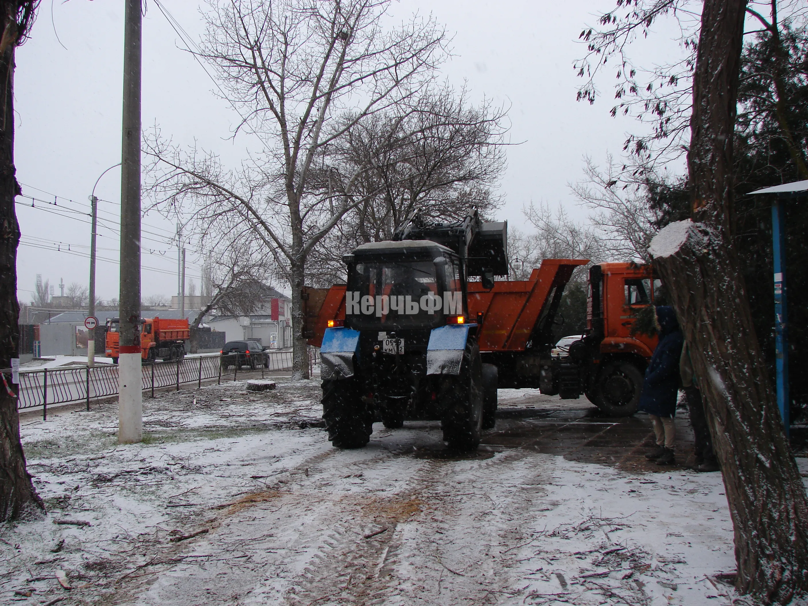 В Керчи продолжается спил аварийных деревьев