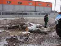 Специалисты Службы городского хозяйства проводили сегодня спил аварийных высоких тополей, растущих вдоль Вокзального шоссе у дома № 35.